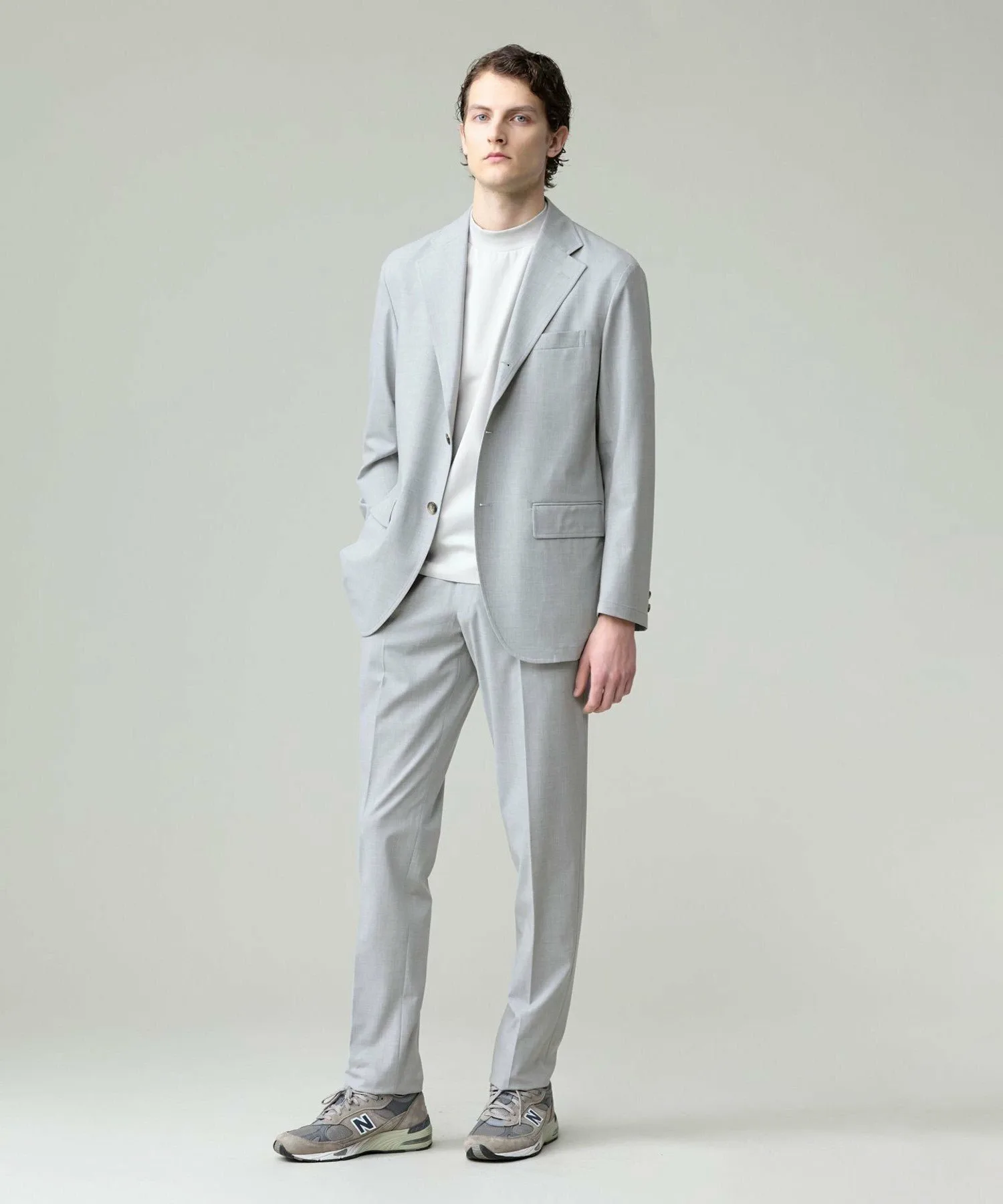 Это как костюм, но не совсем. Он удобен в ношении и выглядит элегантно. Новый концептуальный костюм, который украсит ваше лето. Пиджак: 42 900 йен (с учетом налога) Материал: Изготовлен из уникальной шерстяной смеси, мягкой и легкой, но при этом элегантной и освежающей. Характеристики: Крой не имеет жесткой конструкции, что обеспечивает более свободную посадку, чем у обычных костюмов и пиджаков J.PRESS. Брюки также имеют шнурок. Эти новые особенности обеспечивают расслабленную и удобную посадку, переворачивая ваше традиционное представление о костюме. Функциональность: 〇 Можно стирать дома (ручная стирка) Стиль: Для деловых ситуаций сочетайте с топом или рубашкой с коротким рукавом под пиджаком для изысканного и элегантного образа. В выходные дни вы можете носить брюки отдельно с футболкой или поло. Комментарий дизайнера: Эта вещь идеально подходит для деловых встреч в жаркое лето, а также для создания более элегантного стиля в выходные дни и даже в путешествиях. Мы надеемся, что она привнесет ощущение новизны в ваш новый образ жизни. *Химчистка и домашняя стирка (ручная стирка) могут вызвать незначительные изменения размера (усадку) и текстуры. При подгонке мы рекомендуем добавить примерно 1 см дополнительного пространства к стандартным размерам длины рукава и внутреннего шва. После стирки, пожалуйста, тщательно прогладьте утюгом перед ношением. *Изображения модели и изделия в разложенном виде являются образцами. Фактический продукт может немного отличаться по цвету, характеристикам, отделке, размеру и материалу. Пожалуйста, обратитесь к изображению на вешалке для получения информации о цвете и деталях. *Из-за условий освещения изделие может выглядеть немного ярче, чем есть на самом деле. Также цвет фактического изделия может немного отличаться от изображения из-за настроек компьютера. Благодарим за понимание. В: 185 Г: 88 Ш: 75 В: 94