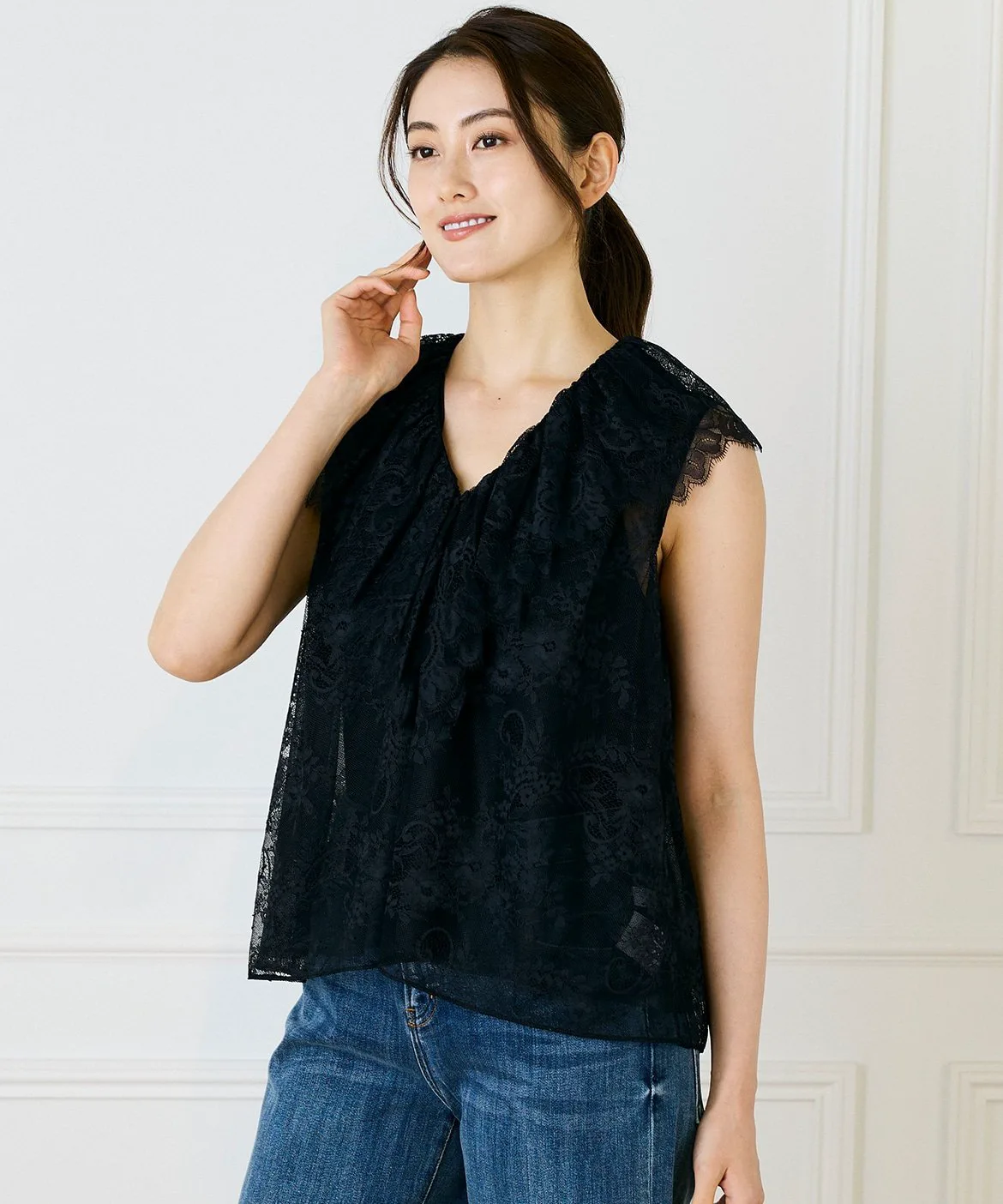 Это изделие отличается воротником с оборками, придающими женственный вид. Вырез горловины регулируется пуговицами, что позволяет носить его расстегнутым как жакет. Прозрачная ткань позволяет создавать совершенно разные образы в зависимости от того, с чем вы его сочетаете. Лиф отделан тюлем, чтобы предотвратить просвечивание. Рекомендуется также сочетать его с майкой, топом или блузкой с длинными рукавами. Даже сочетание с простыми брюками или юбкой добавит элегантности вашему образу.