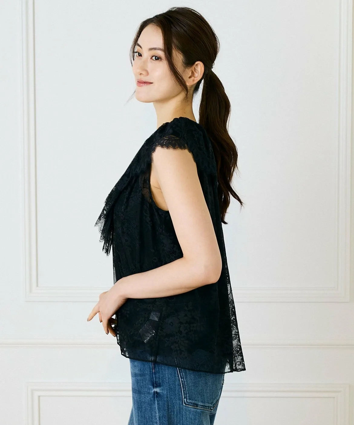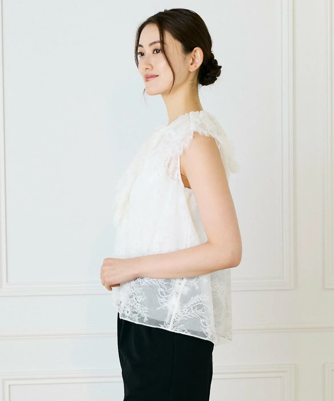 Изготовлено из 100% нейлонового кружева, модного материала этого сезона. Оно обладает богатой текстурой, но при этом легкое и простое в уходе благодаря неприхотливости нейлона. Трехмерное кружево создает ощущение роскоши, само по себе создавая великолепный образ.