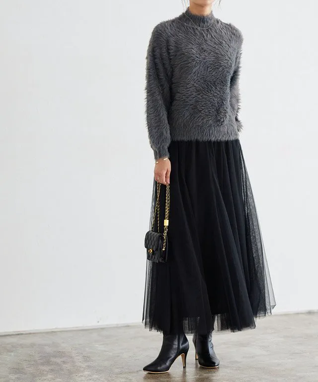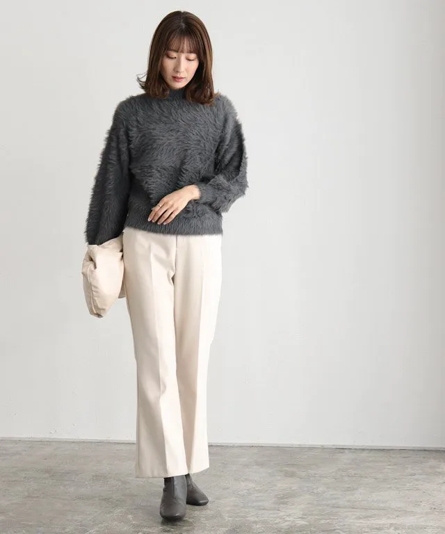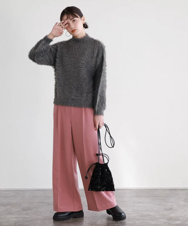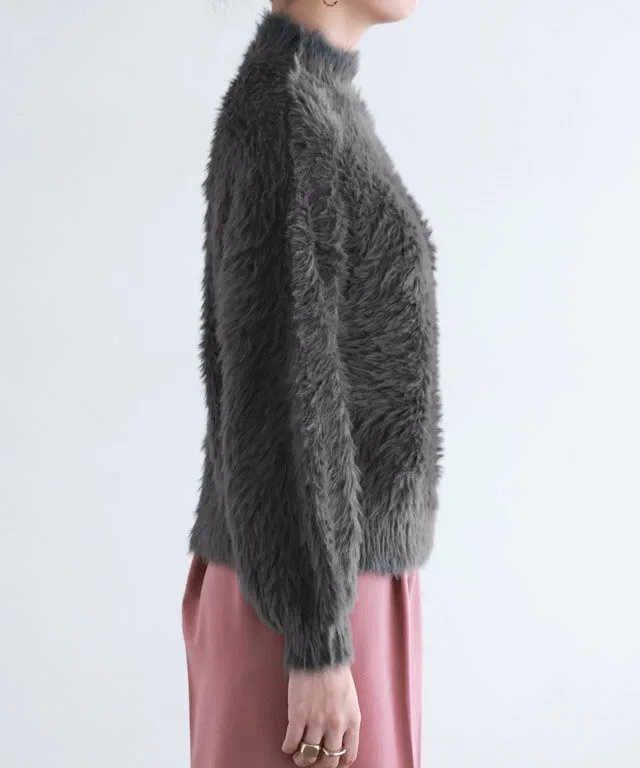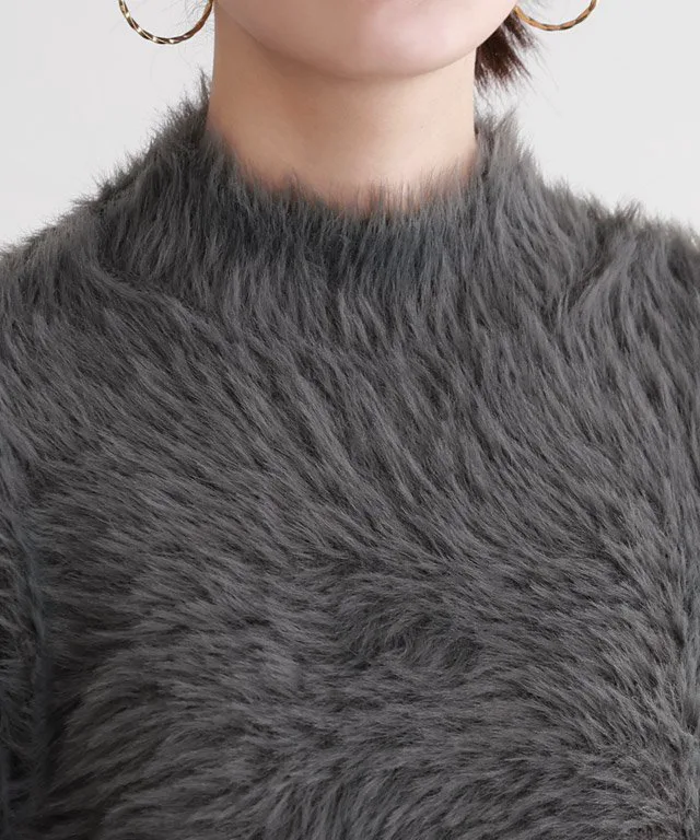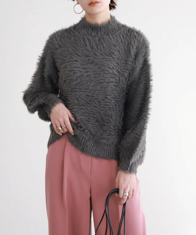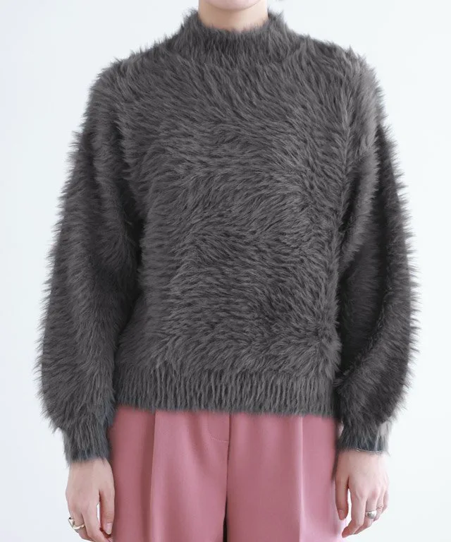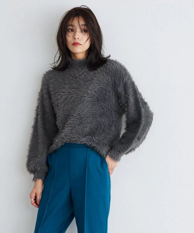 Трикотаж с объемными рукавами и длинным ворсом, создающий модный образ.