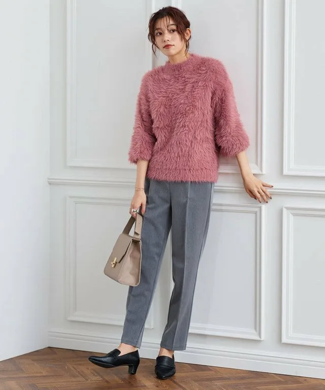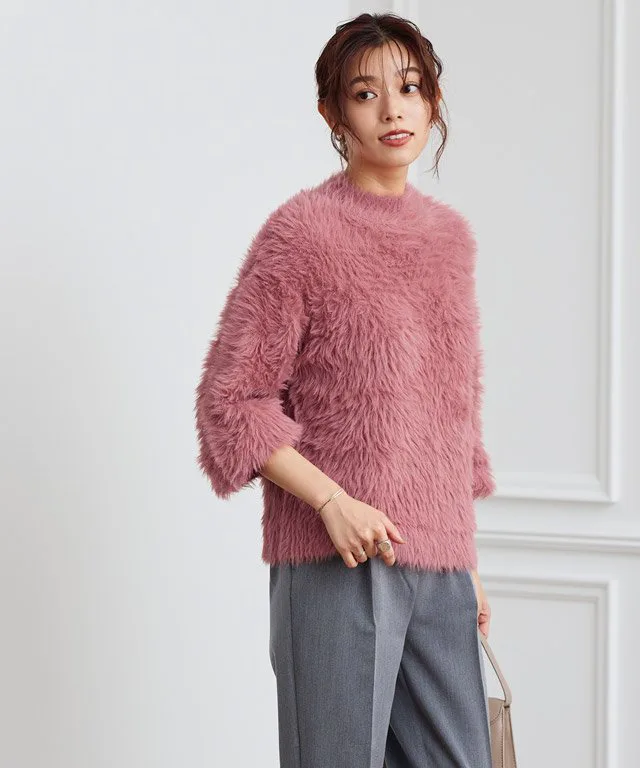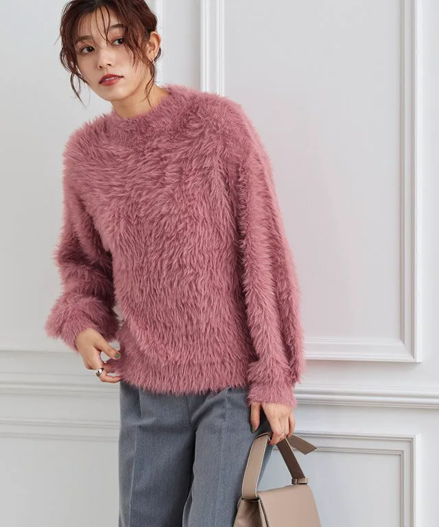 Трикотаж с объемными рукавами и длинным ворсом, создающий модный образ.