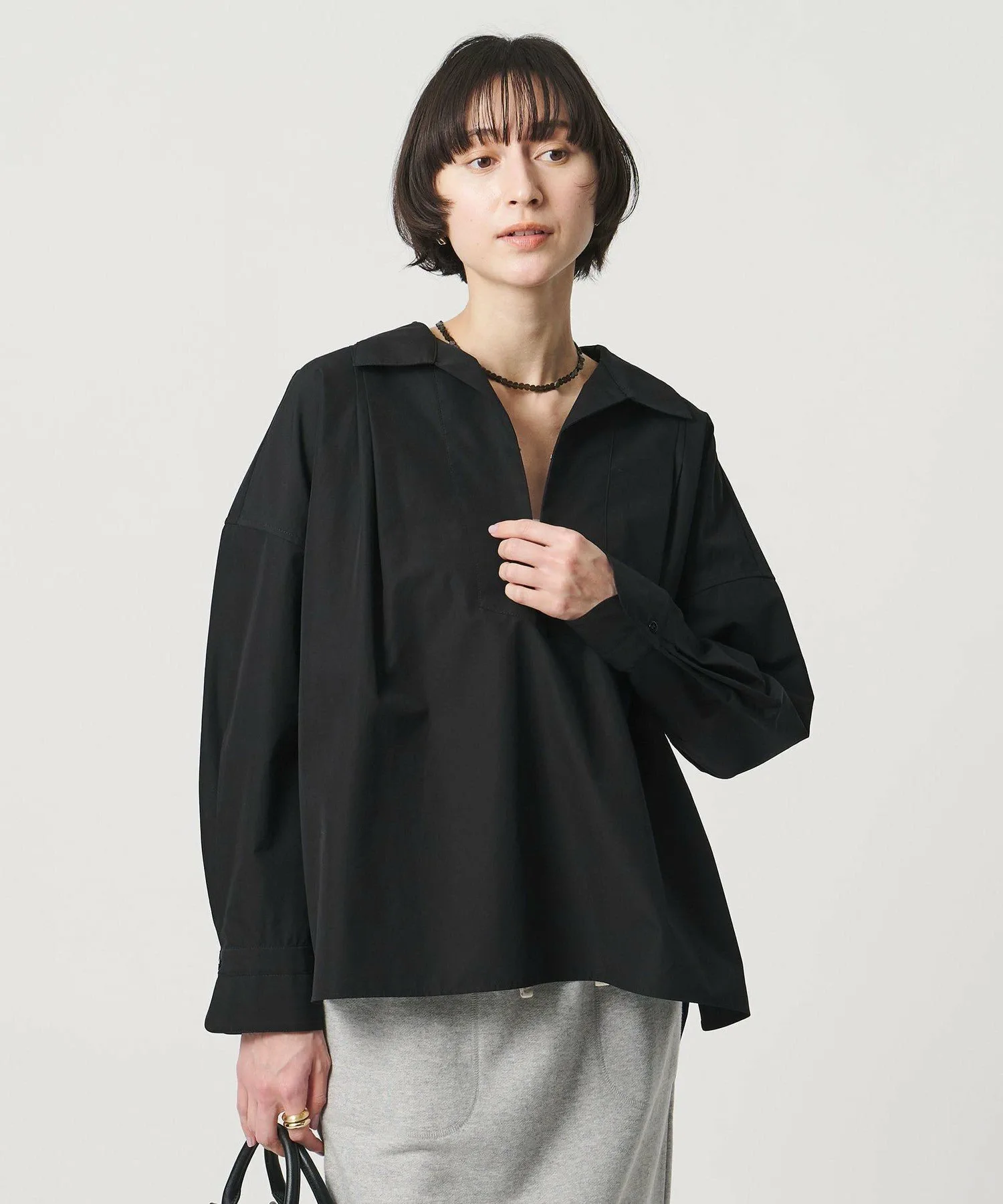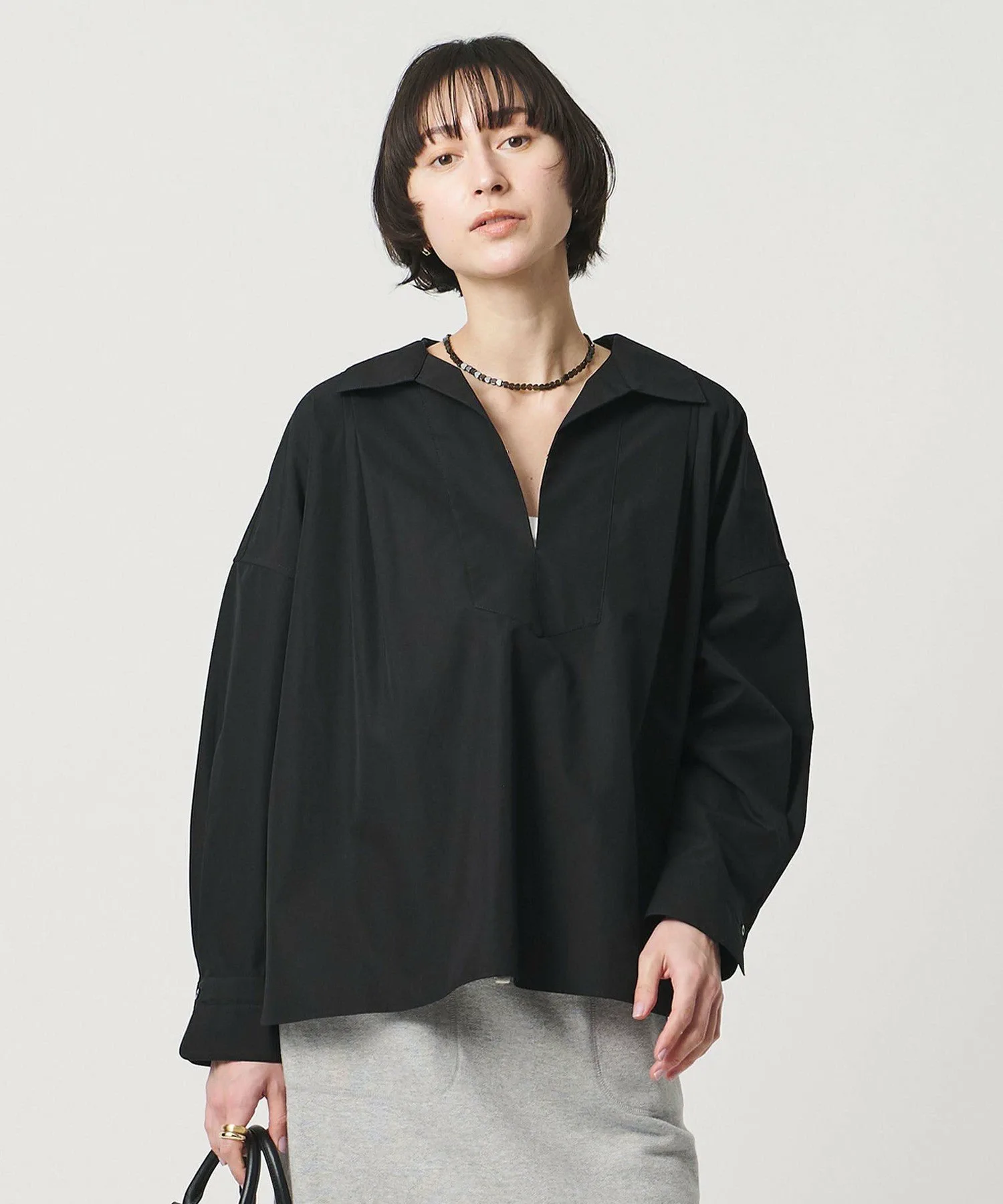 Трехмерный силуэт, создаваемый этой рубашкой, также привлекателен, а сама вещь отличается непринужденным стилем, подчеркивая элегантность высококачественных материалов.