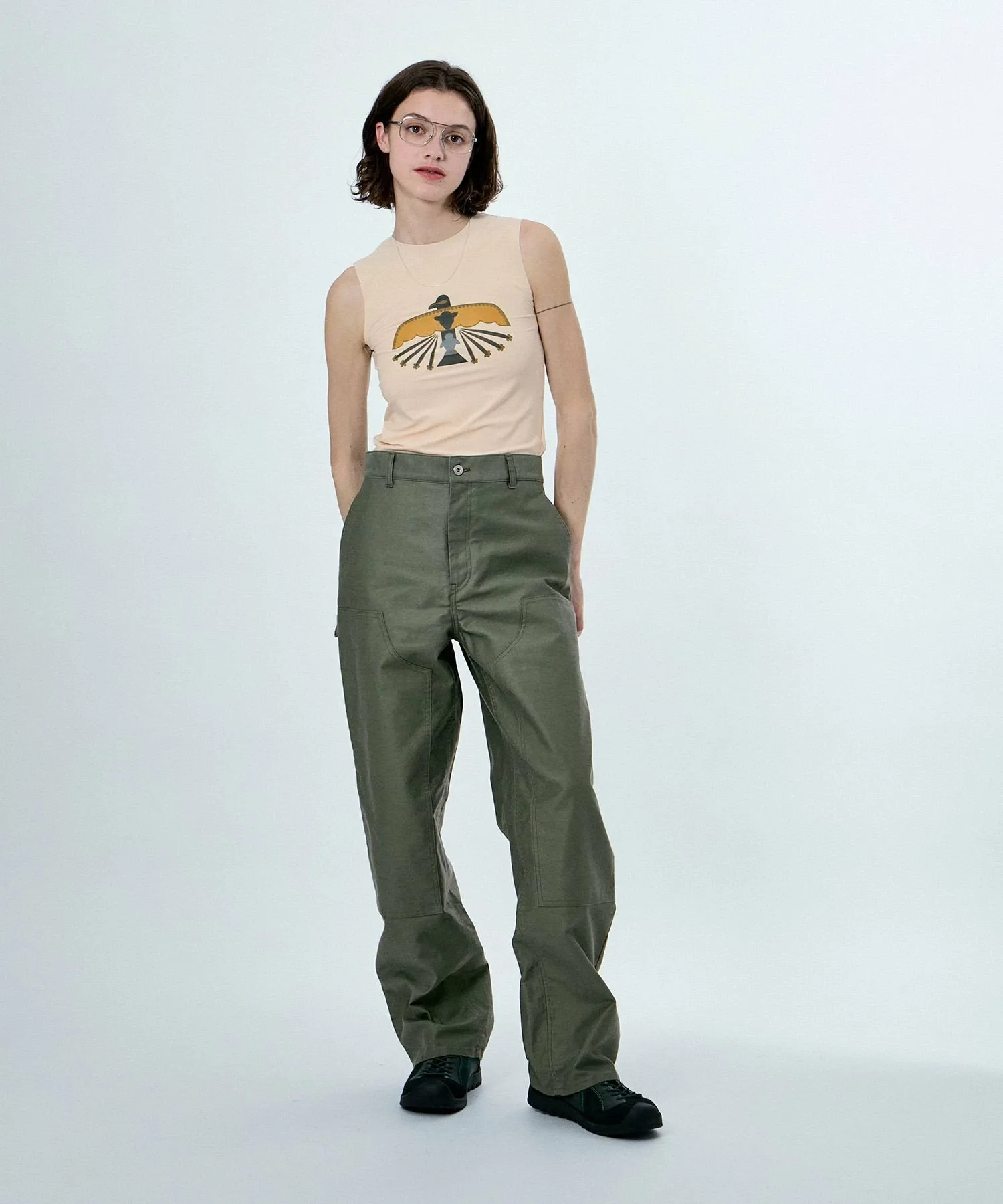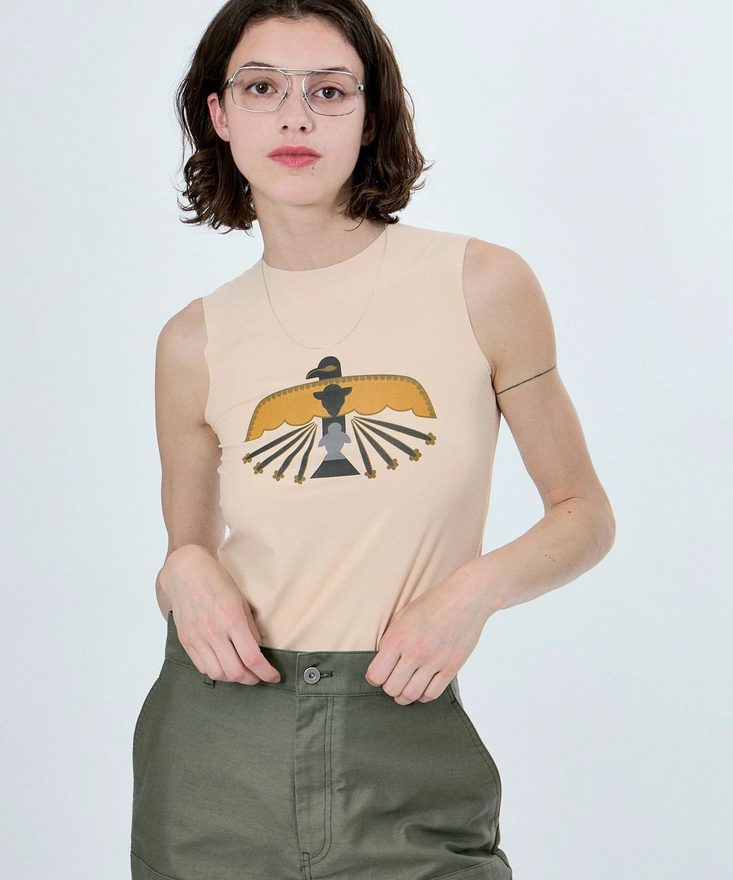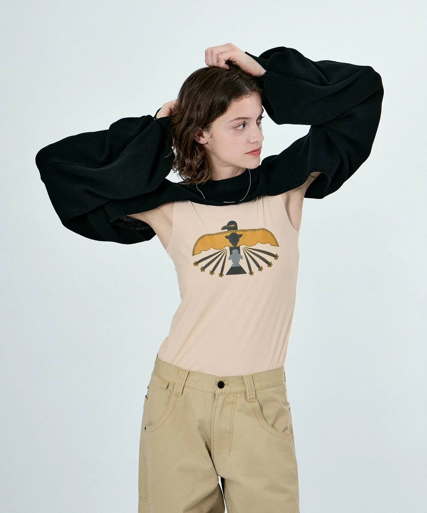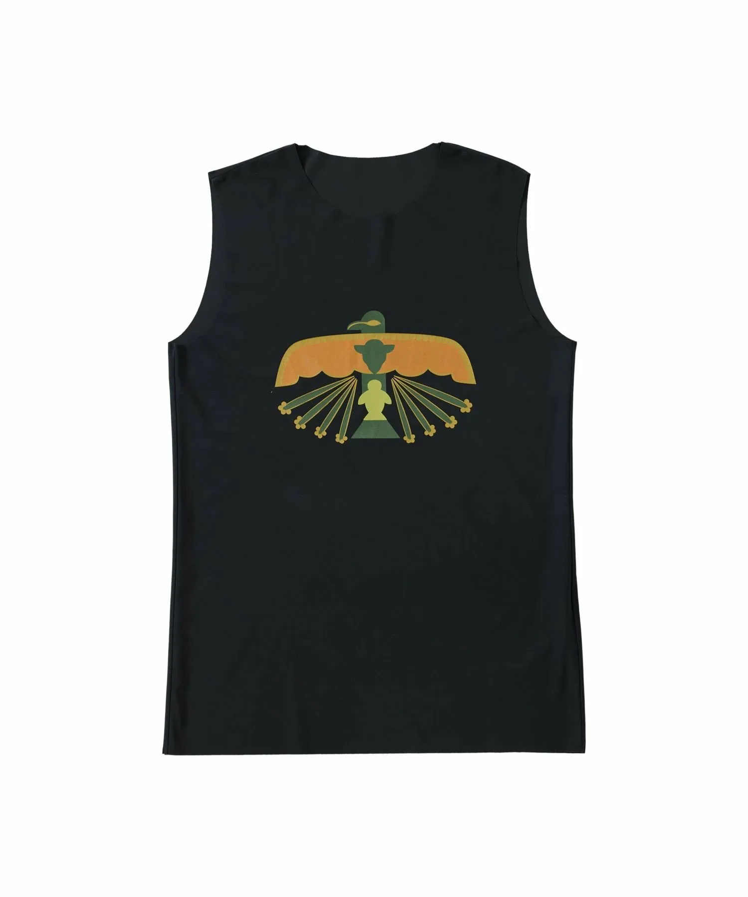 Безрукавная облегающая вещь, воплощающая в себе послание темы сезона: «УЧИТЬ МИРУ».На передней части изображен оригинальный мотив птицы Муу, основанный на Громовой птице, которая является символом мира, особенно среди коренных американцев.