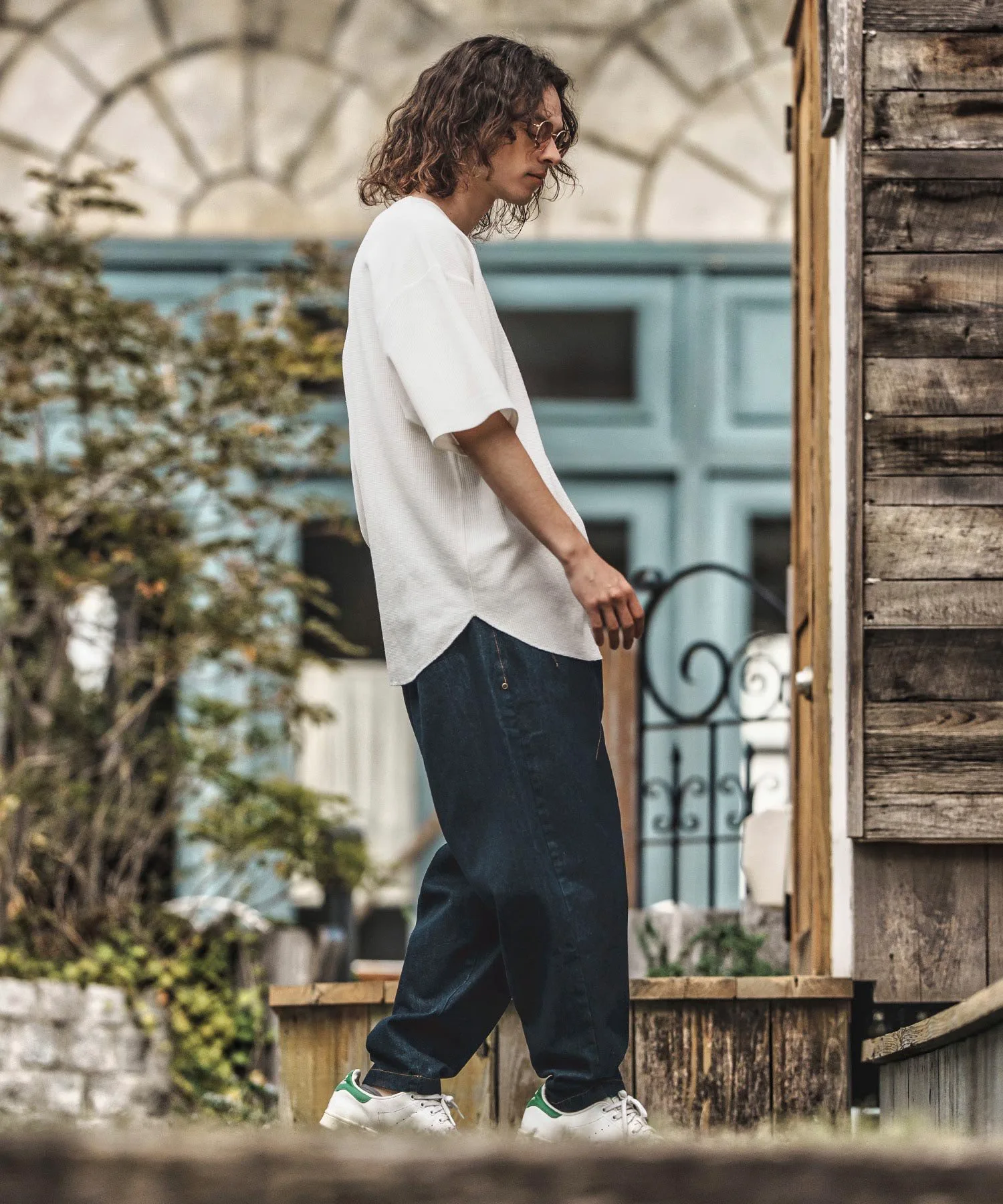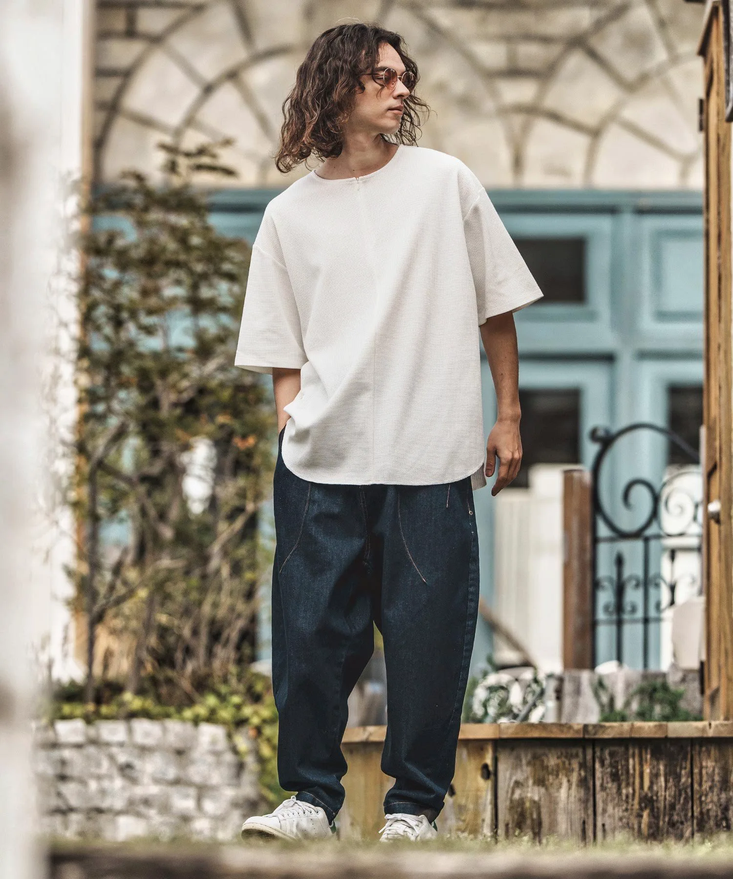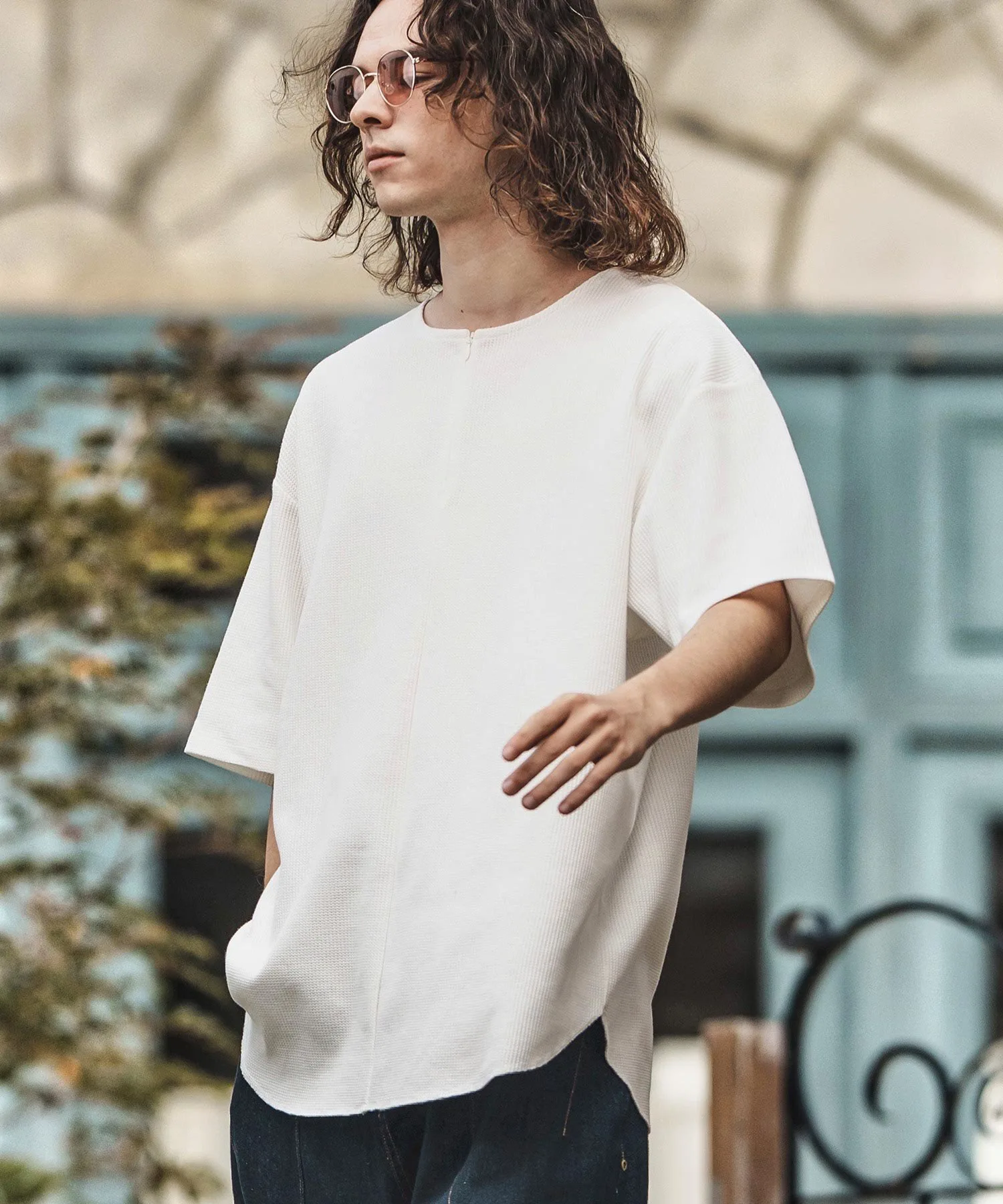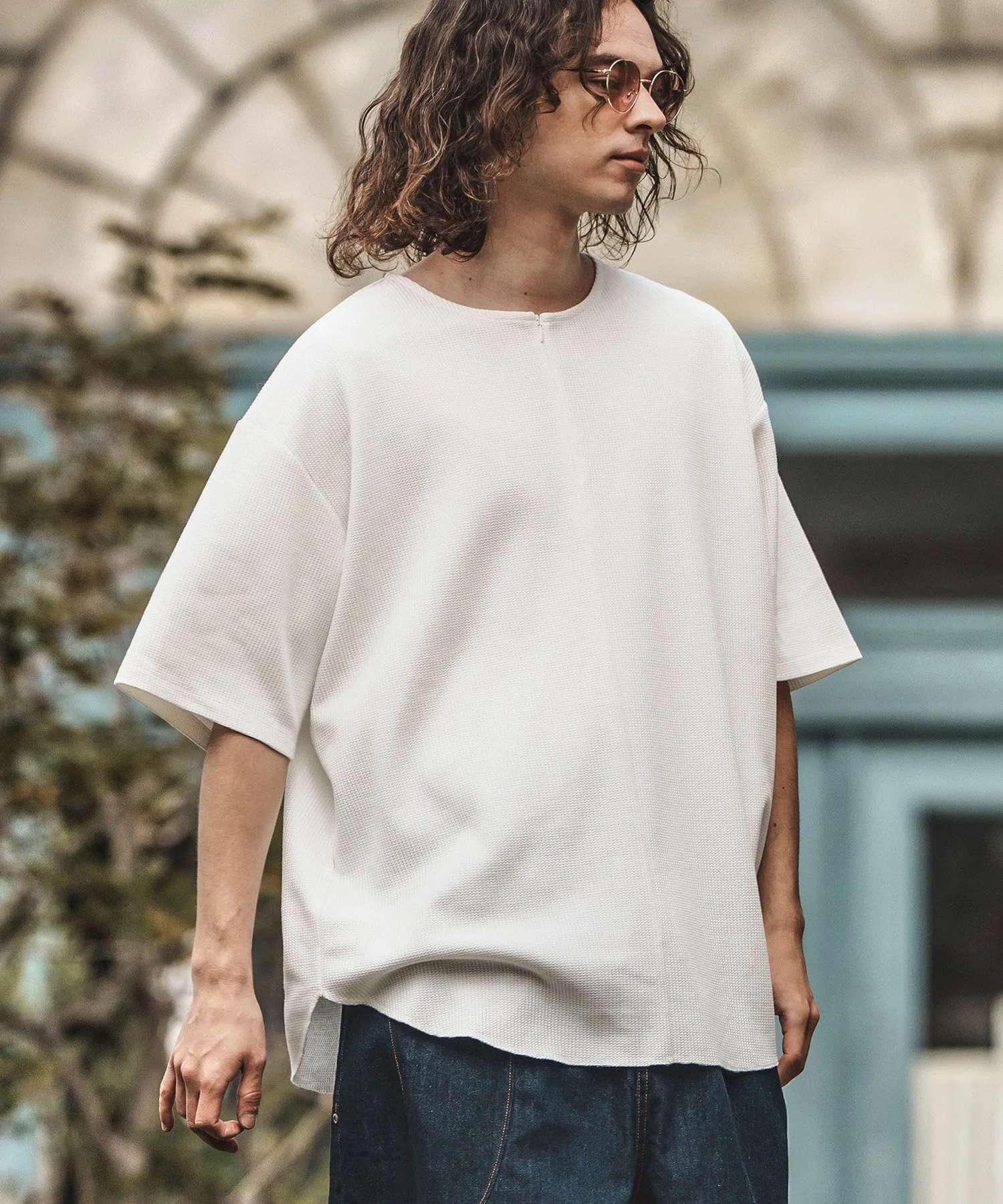 Это футболка оверсайз из ткани с вафельным кроем.