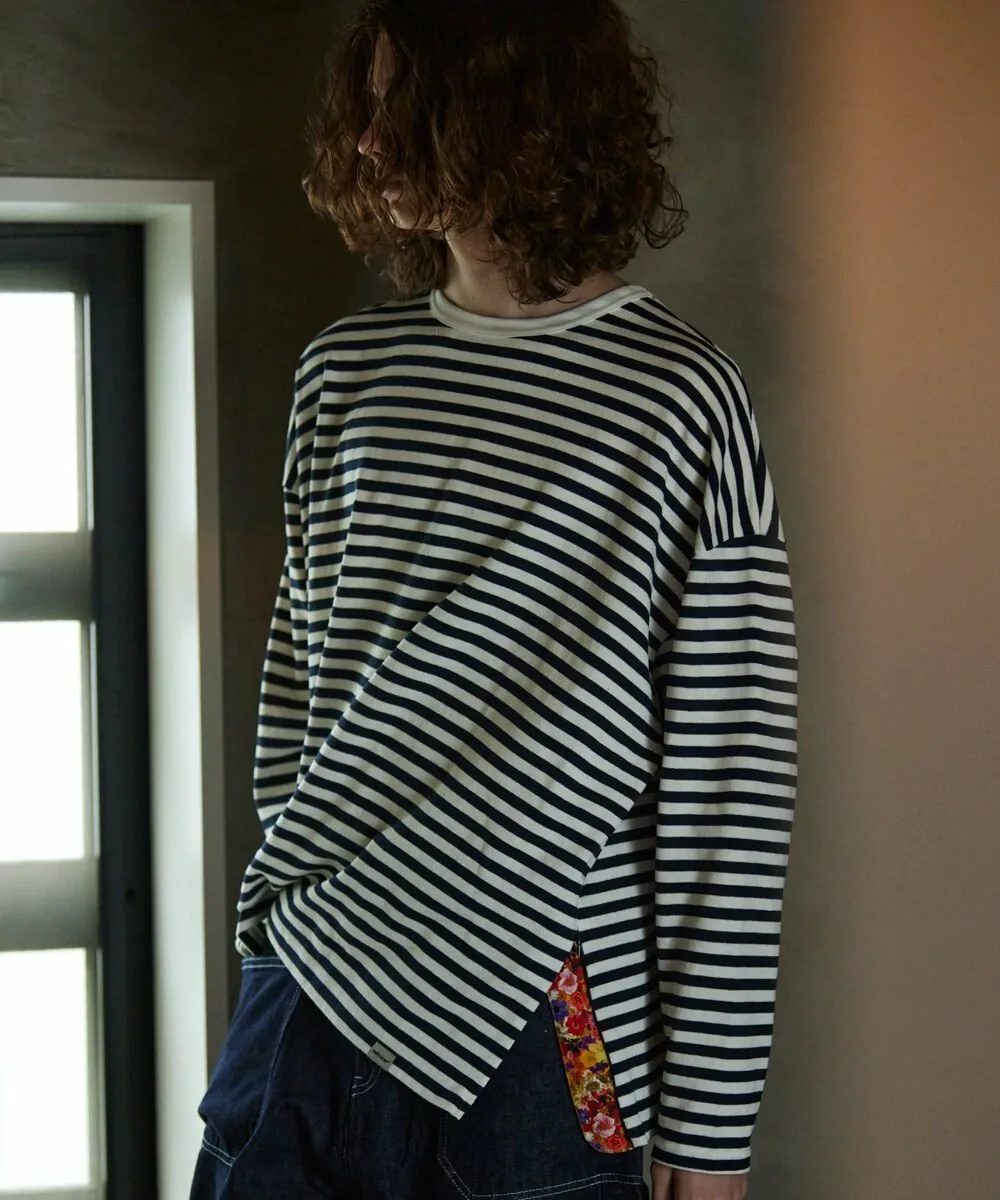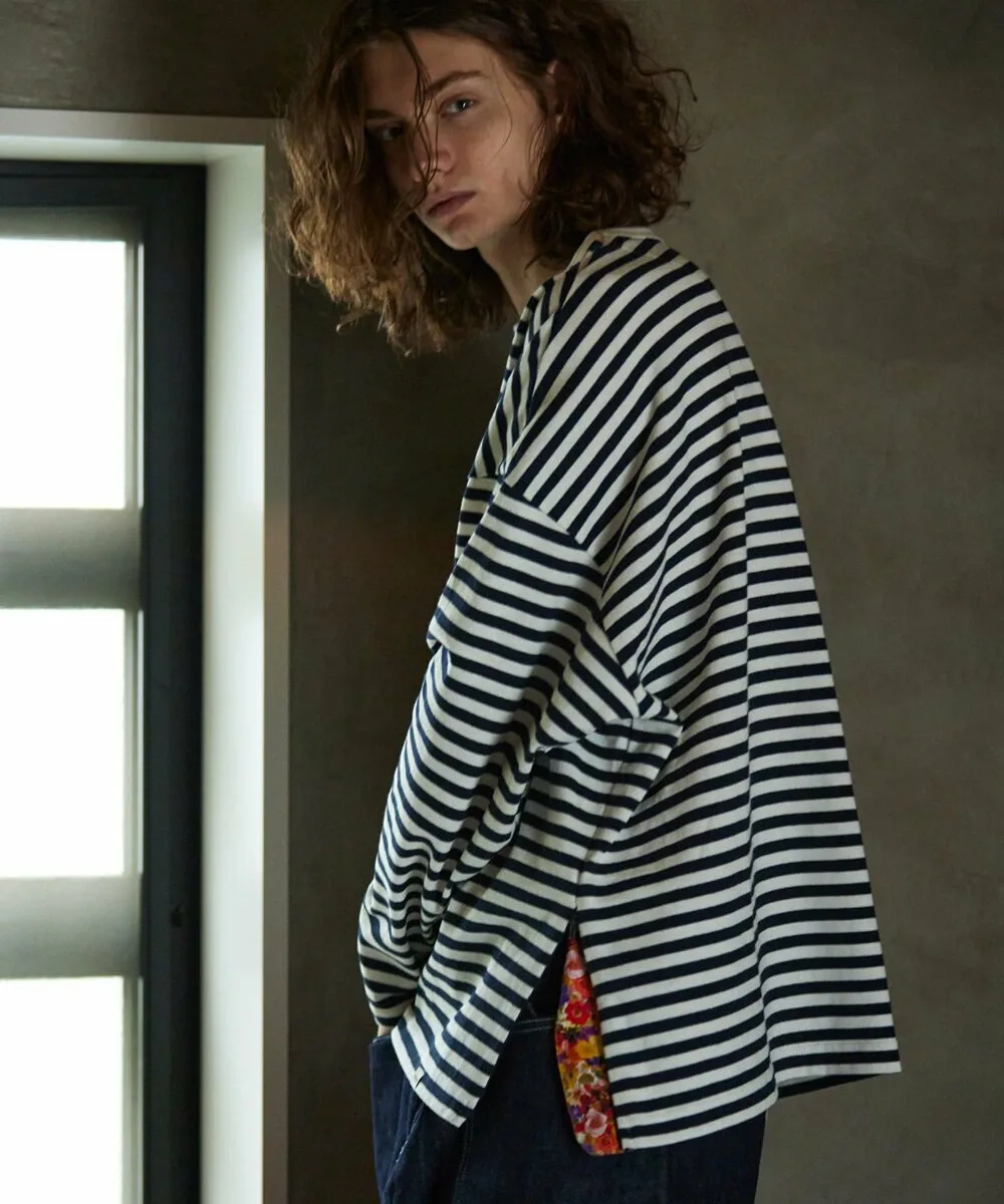 Этот полосатый фасон сшит из отдельных элементов имеет оригинальный цветочный узор на передней планке и потайную молнию сбоку. Это удобная в носке вещь с достаточным количеством акцентов.