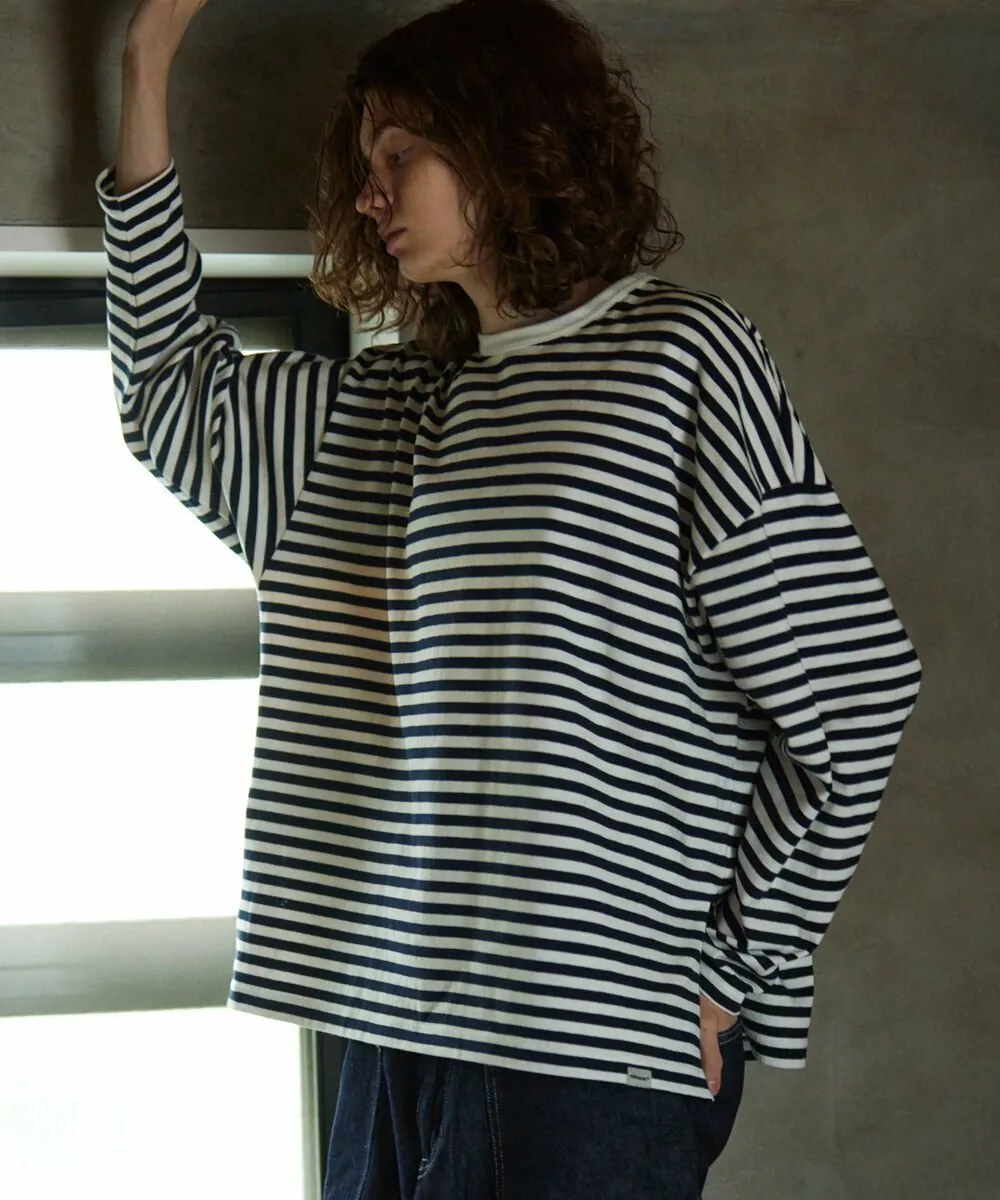 Хрустящий, умеренно плотный трикотаж в полоску. Его гладкая текстура делает его подходящим для ношения круглый год.