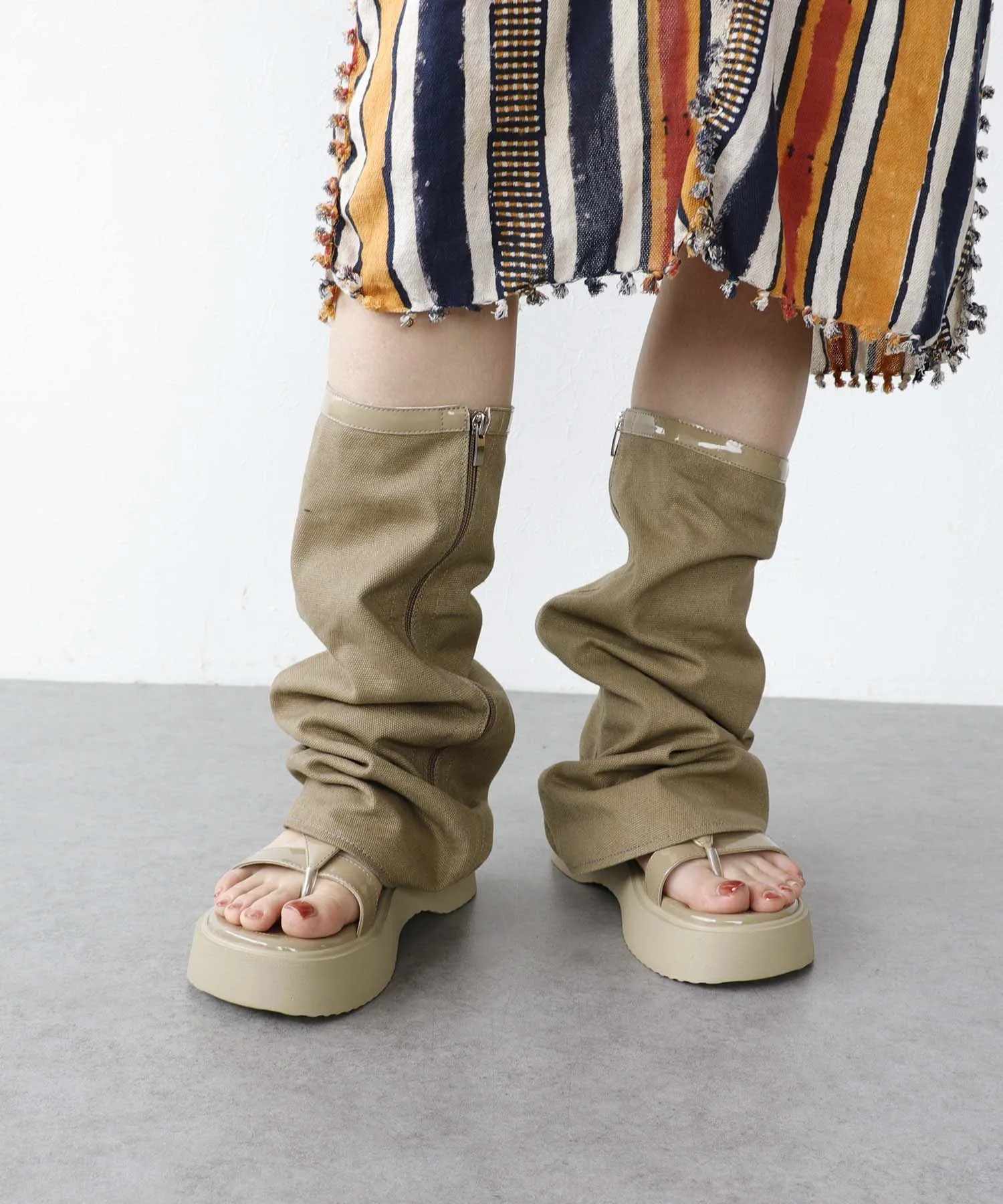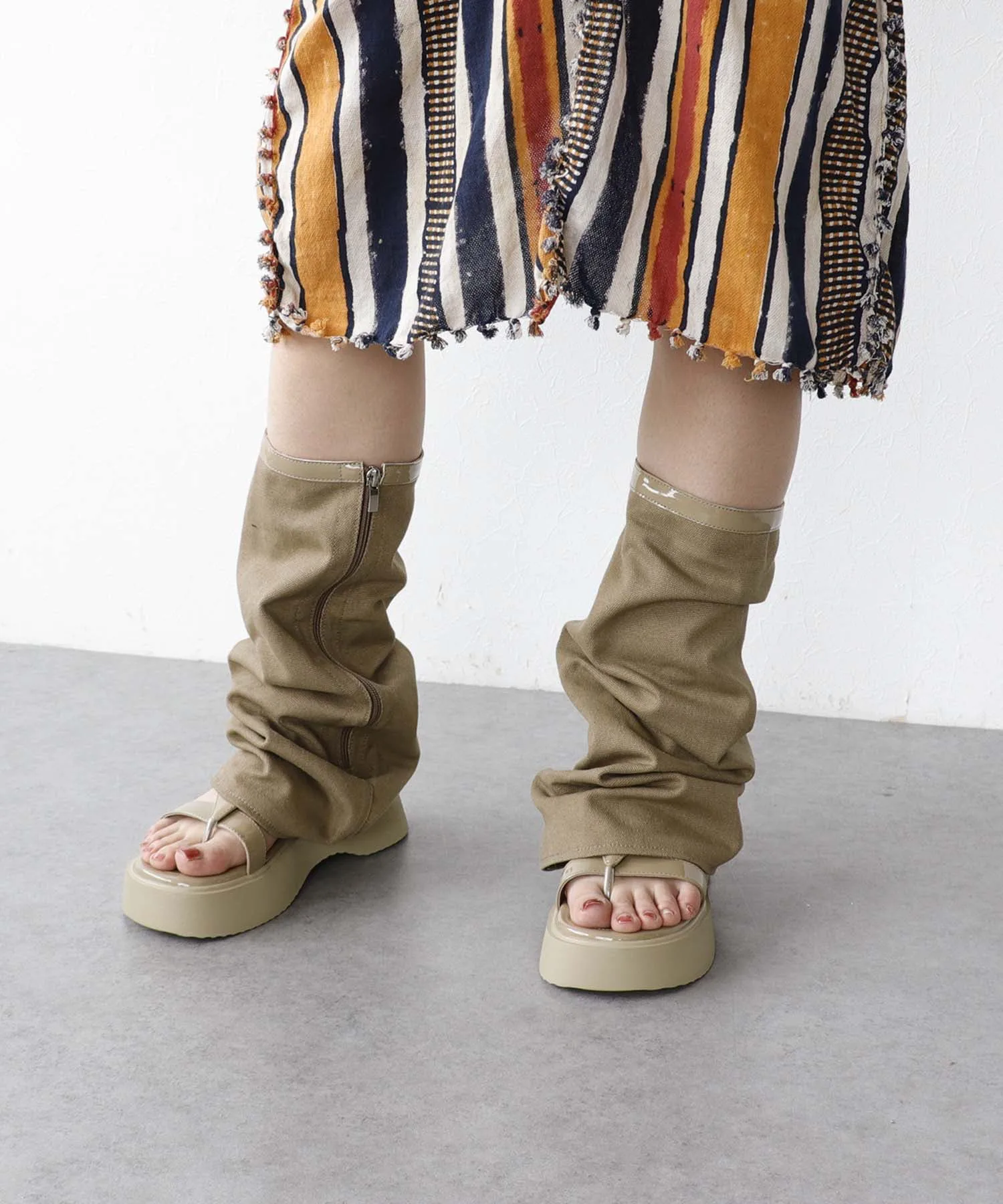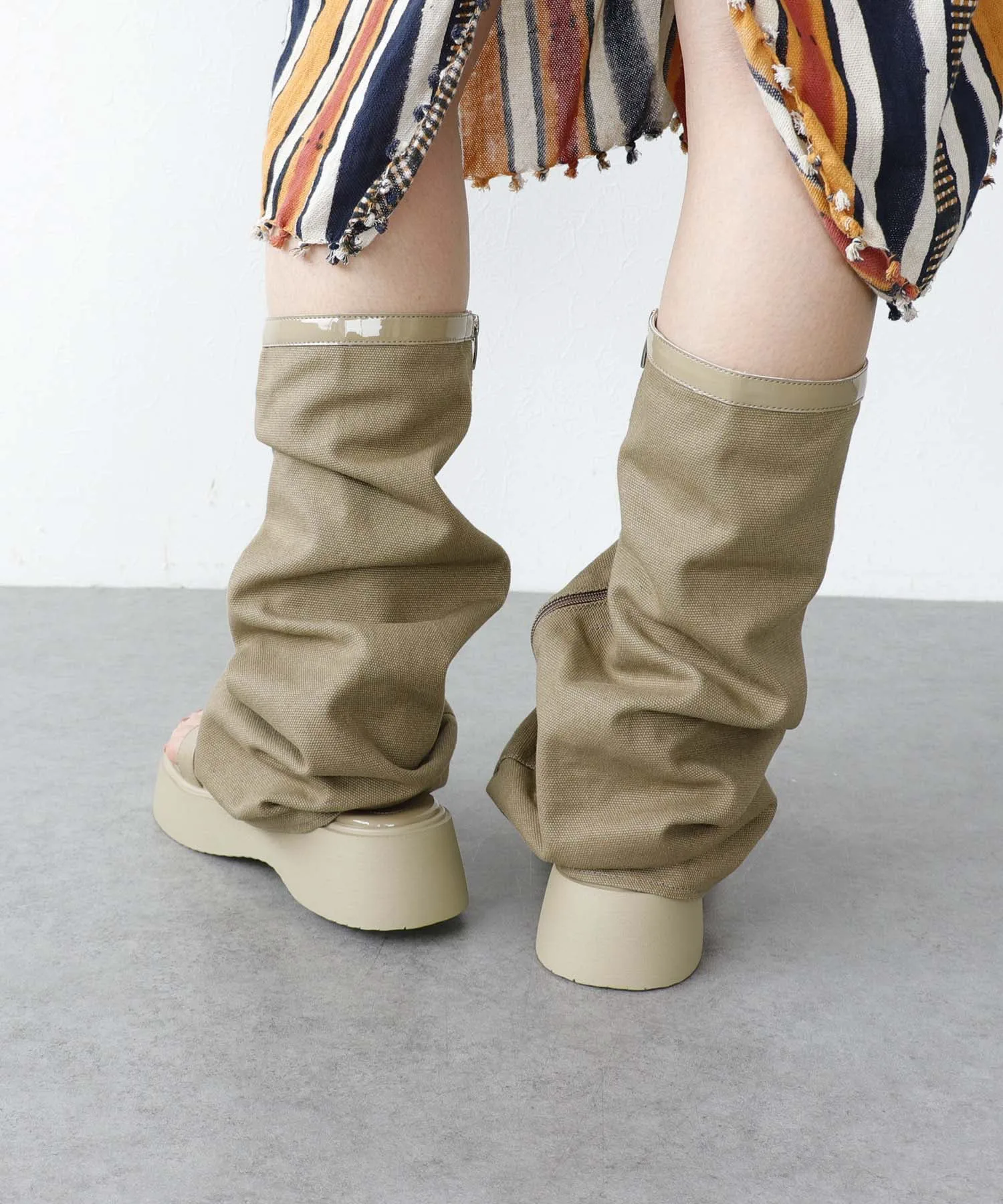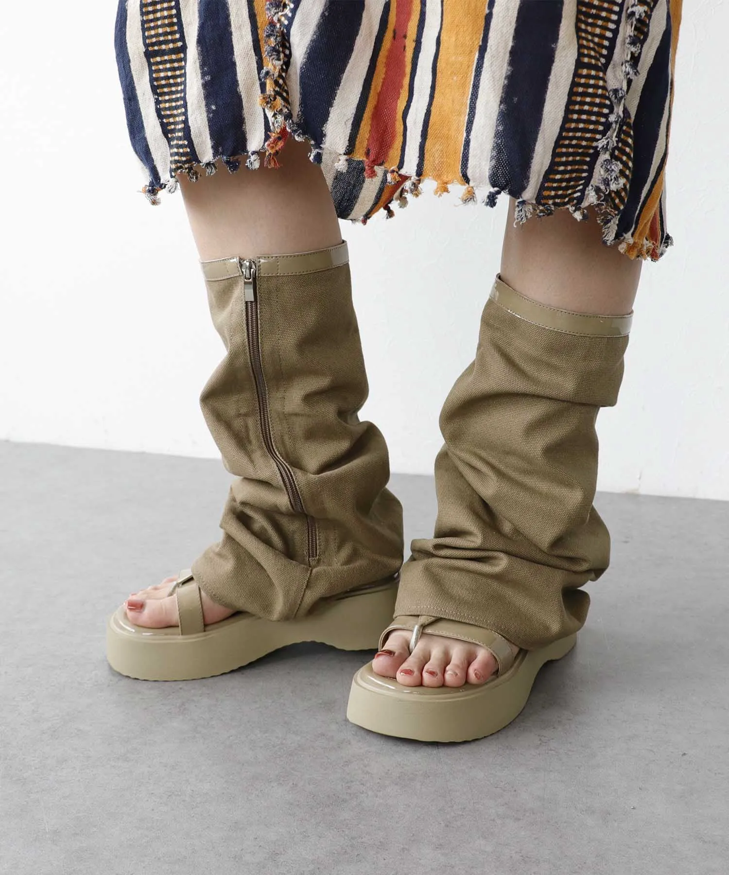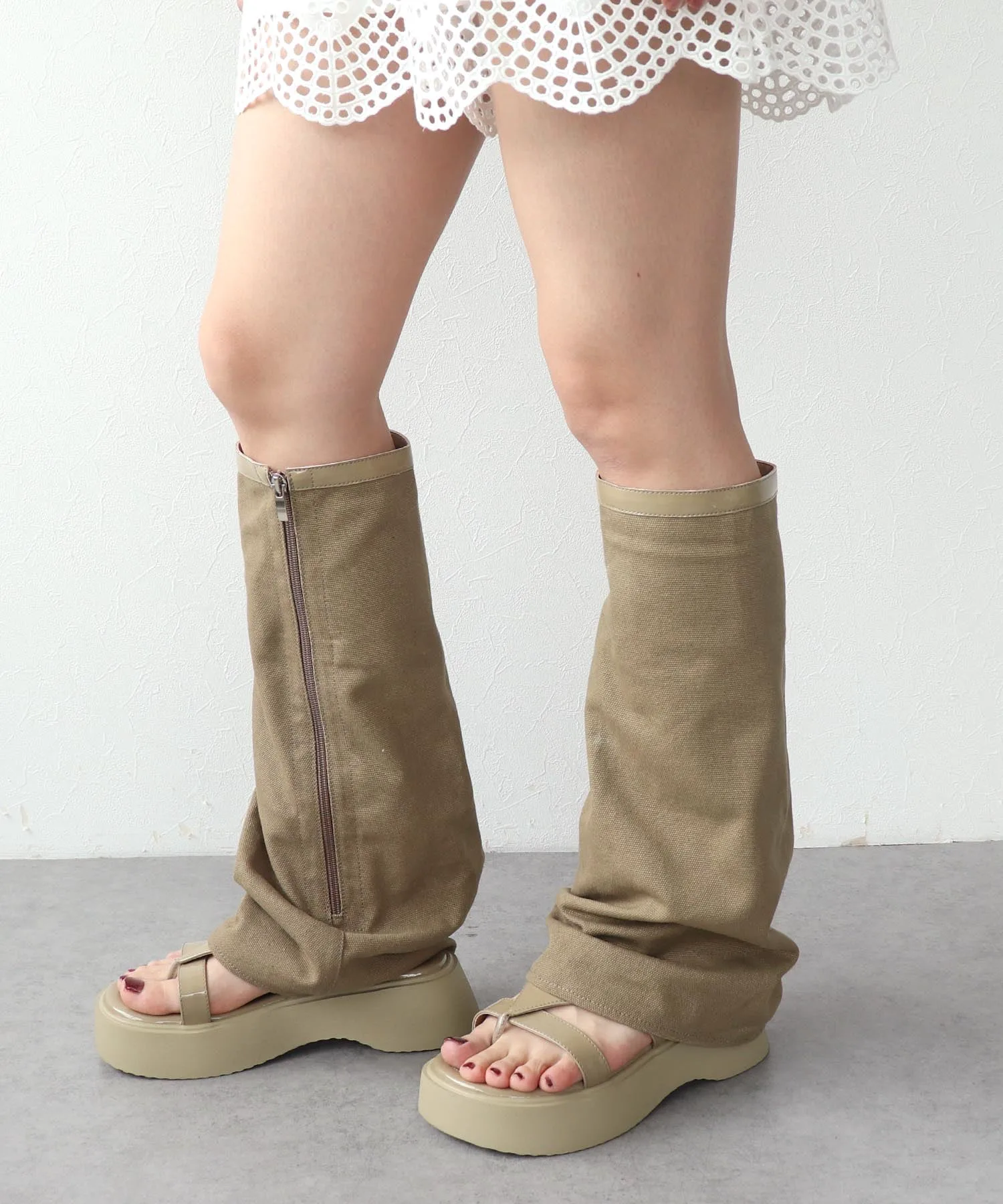 Гетры и толстая подошва создают эффект удлинения ног.