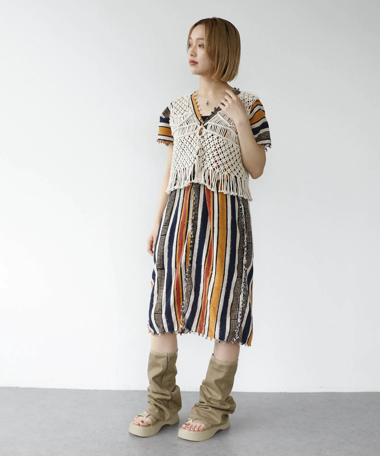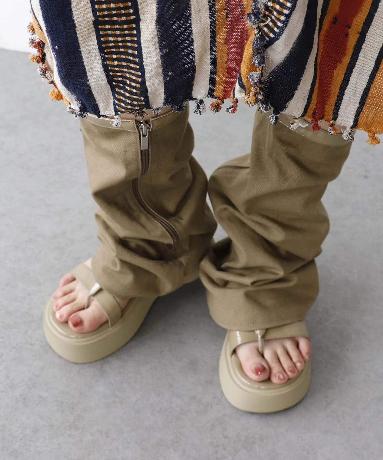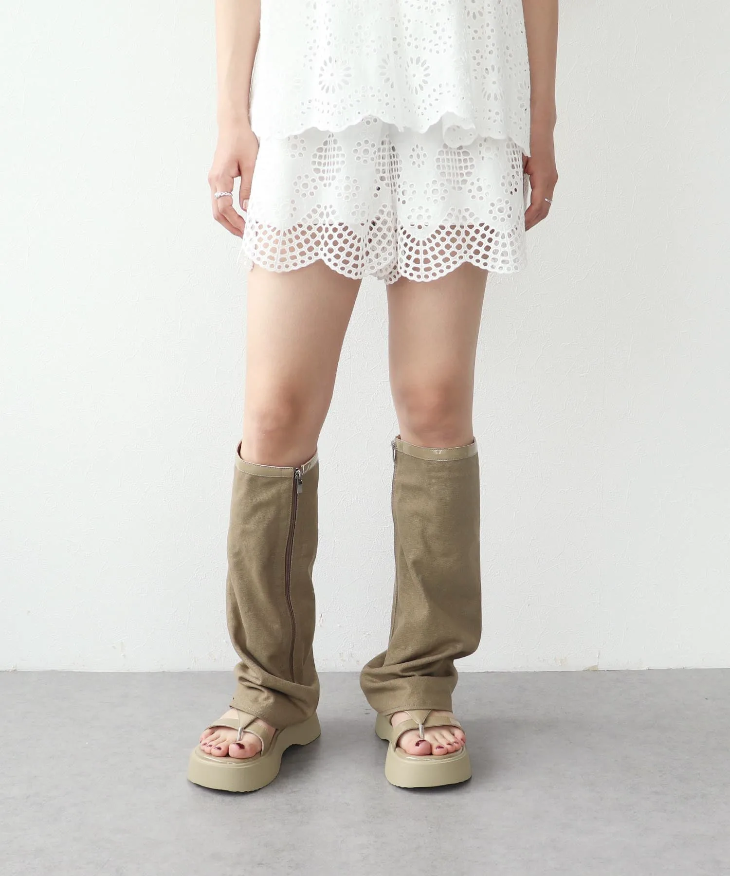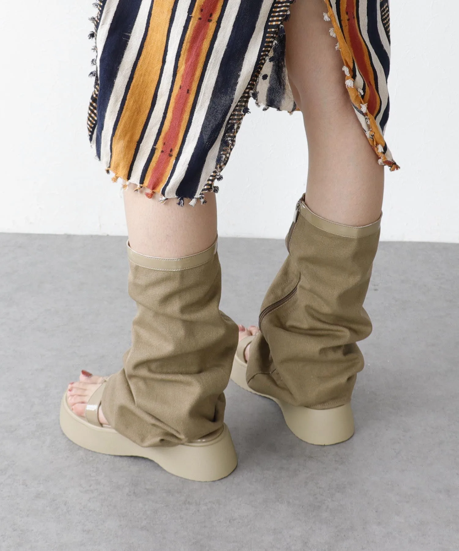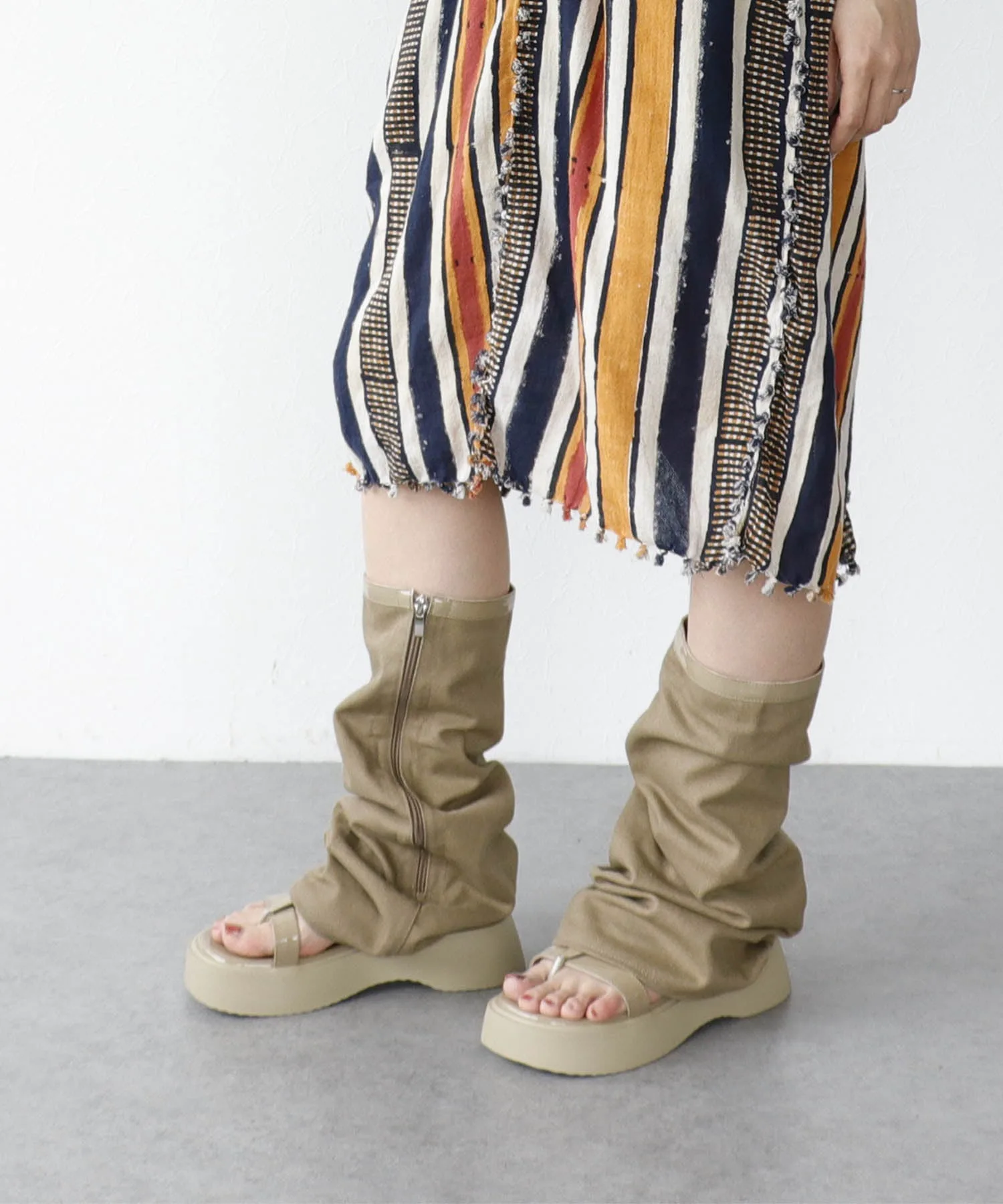 Гетры и толстая подошва создают эффект удлинения ног.