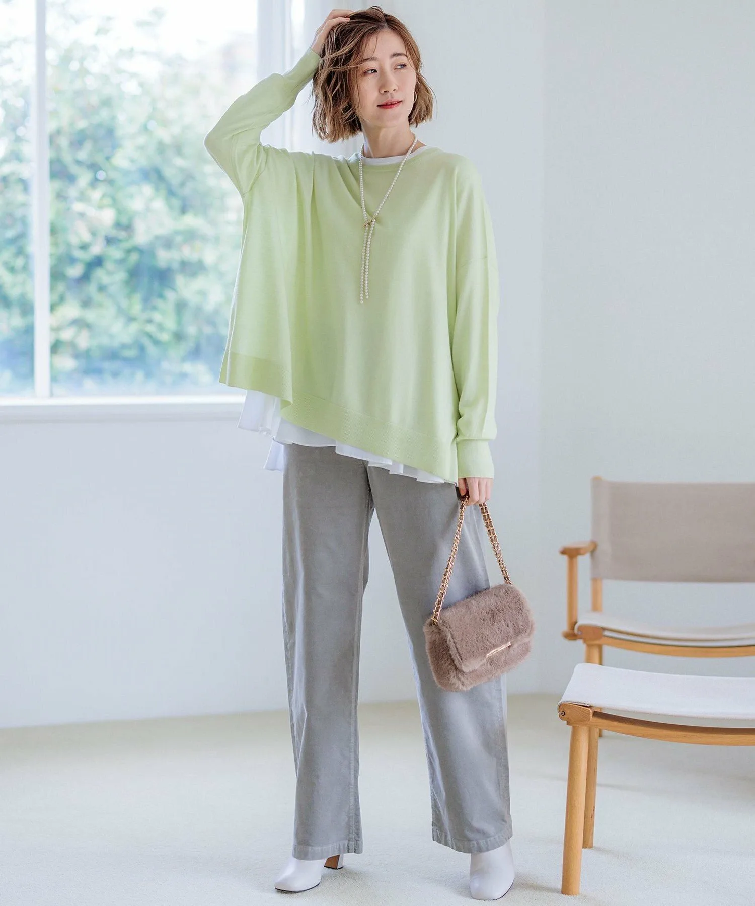 Пуловер из трикотажа широкого кроя, классический стиль 23ku. Широкий силуэт выделяет его, а умеренная драпировка придаёт ему чистый, элегантный вид, сохраняя при этом аккуратность и опрятность. Удобная вещь для повседневной взрослой моды. Универсальный дизайн позволяет носить его как самостоятельно, так и в сочетании с рубашкой или блузкой для создания многослойного образа. Он имеет оптимальную толщину, поэтому его можно носить под верхней одеждой, не создавая ощущения громоздкости. Комфортная текстура делает его идеальным для повседневной носки. Однотонная версия имеет полоску на спине. Доступна в девяти цветах: сплошной черный (#005), красно-оранжевый (#020), синий (#070) и светло-зеленый (#062), а также двухцветный бежевый и кремовый (#233) и серый и темно-синий (#204). Три дополнительных цвета, эксклюзивные для интернет-магазина, имеют полосатую расцветку: бежевый и черный (#133), темно-синий и яблочный (#175) и черный и кремовый (#105). Материал: Эта всемирно известная камвольная пряжа производится по специальной технологии, разработанной итальянской компанией Zegna Baruffa Lane Borgosia. Изготовленная из тончайшей австралийской шерсти, она устойчива к усадке, что обеспечивает мягкую, нежную текстуру, сохраняя при этом блеск, пышность и эластичность. Она также обработана для предотвращения образования катышков (образование свободных нитей, похожих на комочки ворса). Несмотря на то, что она изготовлена из 100% шерсти, ее можно стирать вручную, что делает ее отличным вариантом для домашнего ухода.