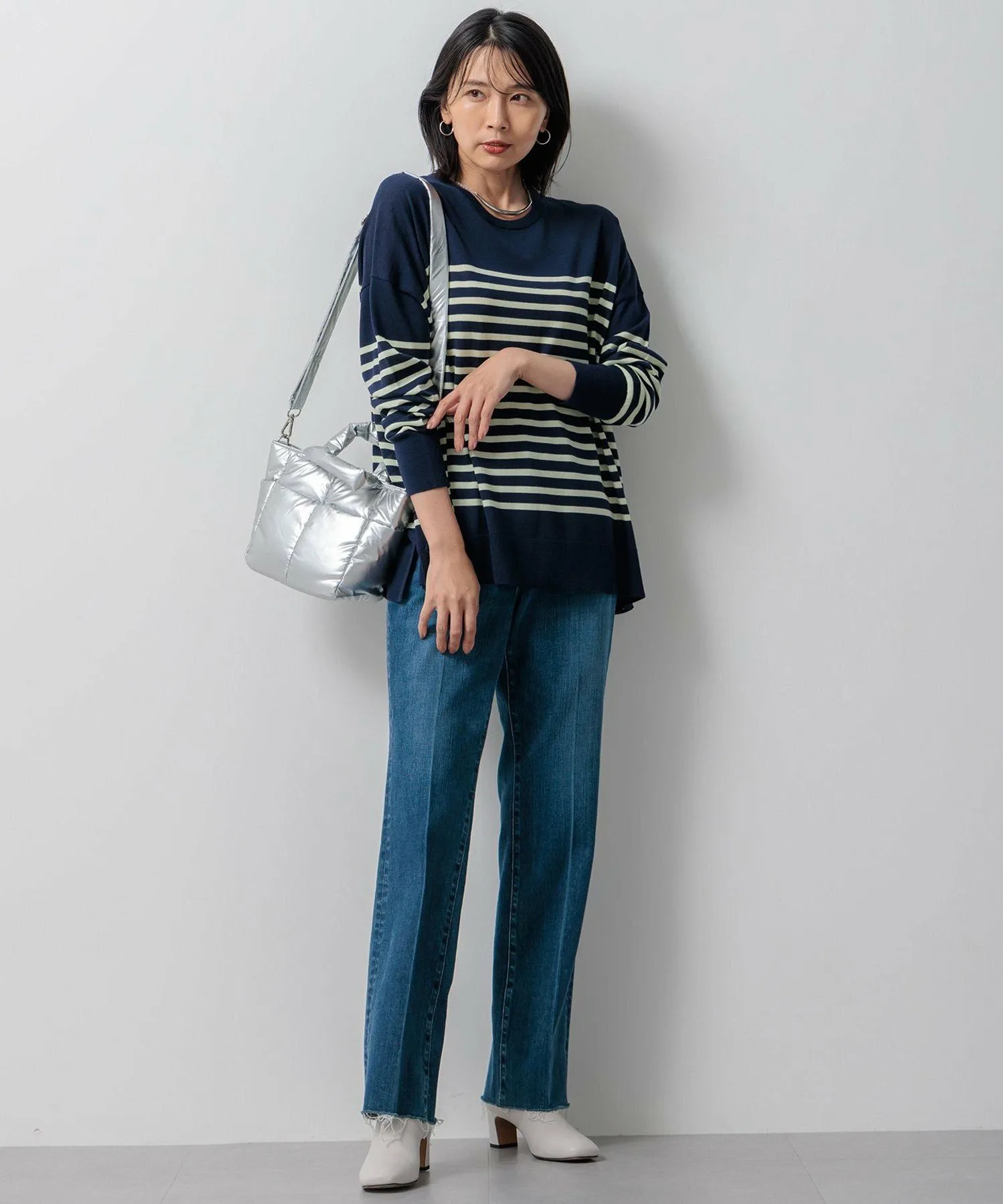 Пуловер из трикотажа широкого кроя, классический стиль 23ku. Широкий силуэт выделяет его, а умеренная драпировка придаёт ему чистый, элегантный вид, сохраняя при этом аккуратность и опрятность. Удобная вещь для повседневной взрослой моды. Универсальный дизайн позволяет носить его как самостоятельно, так и в сочетании с рубашкой или блузкой для создания многослойного образа. Он имеет оптимальную толщину, поэтому его можно носить под верхней одеждой, не создавая ощущения громоздкости. Комфортная текстура делает его идеальным для повседневной носки. Однотонная версия имеет полоску на спине. Доступна в девяти цветах: сплошной черный (#005), красно-оранжевый (#020), синий (#070) и светло-зеленый (#062), а также двухцветный бежевый и кремовый (#233) и серый и темно-синий (#204). Три дополнительных цвета, эксклюзивные для интернет-магазина, имеют полосатую расцветку: бежевый и черный (#133), темно-синий и яблочный (#175) и черный и кремовый (#105). Материал: Эта всемирно известная камвольная пряжа производится по специальной технологии, разработанной итальянской компанией Zegna Baruffa Lane Borgosia. Изготовленная из тончайшей австралийской шерсти, она устойчива к усадке, что обеспечивает мягкую, нежную текстуру, сохраняя при этом блеск, пышность и эластичность. Она также обработана для предотвращения образования катышков (образование свободных нитей, похожих на комочки ворса). Несмотря на то, что она изготовлена из 100% шерсти, ее можно стирать вручную, что делает ее отличным вариантом для домашнего ухода.
