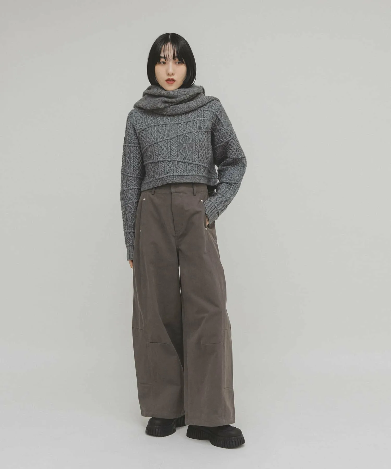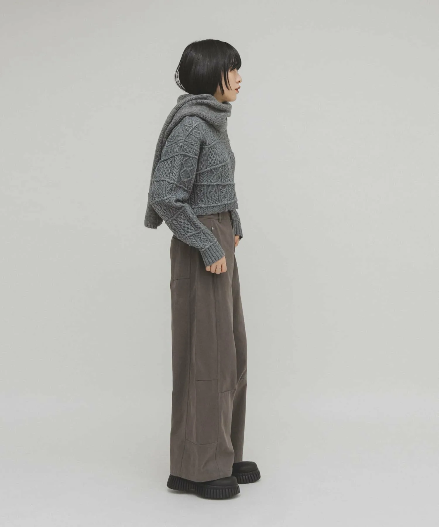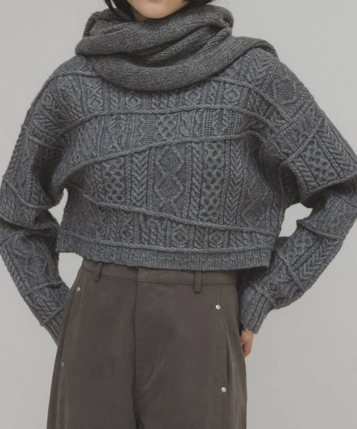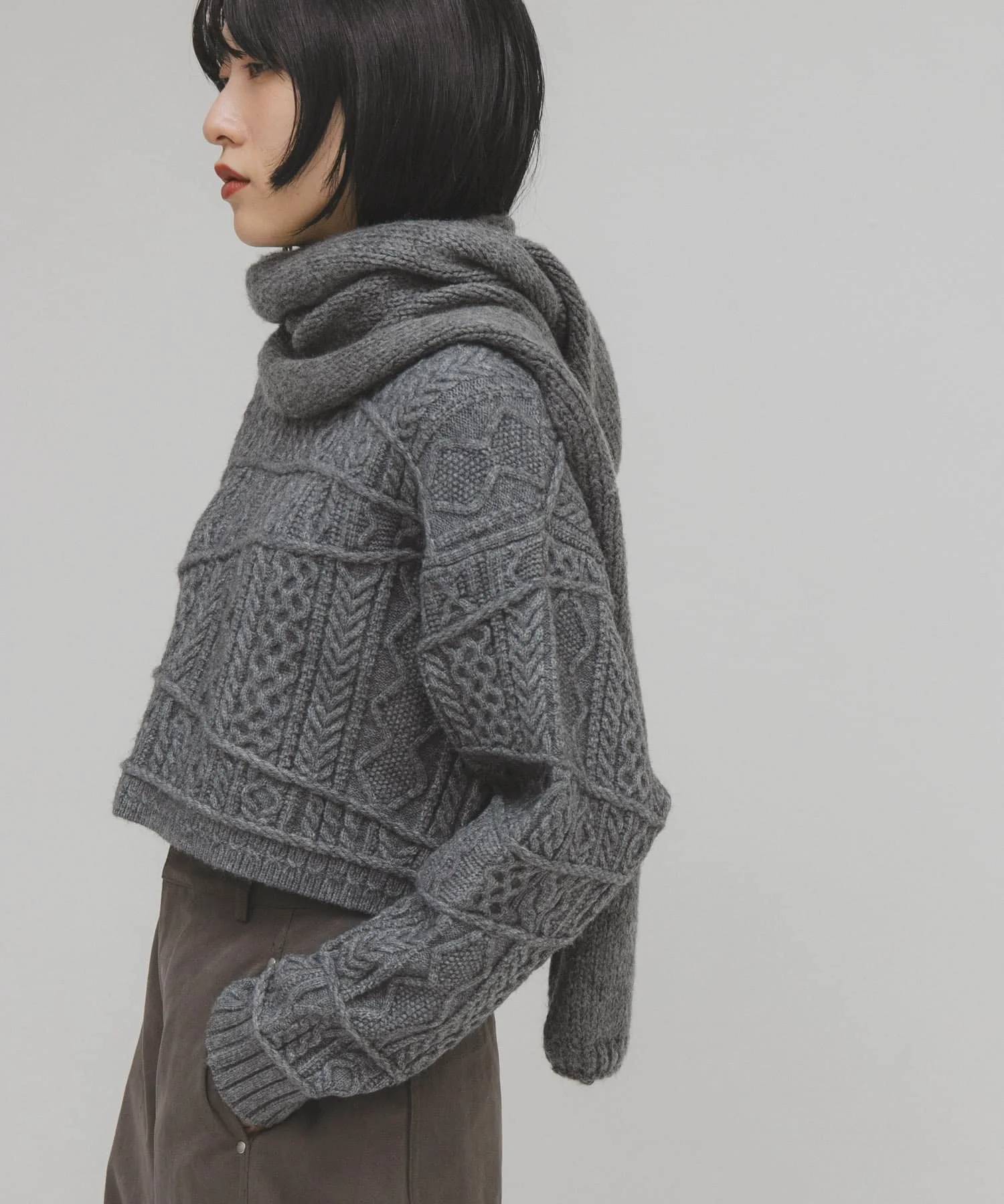 Запоминающийся и эффектный трикотаж с узором «косичка» в стиле пэчворк. Слегка плотная вязка придает изделию ощущение тяжести и формы. Укороченная длина позволяет легко создать баланс. Мы также рекомендуем сочетать его с юбкой-оберткой MIX Cable Wrap Skirt (KBA7-25R120), изготовленной из того же материала.