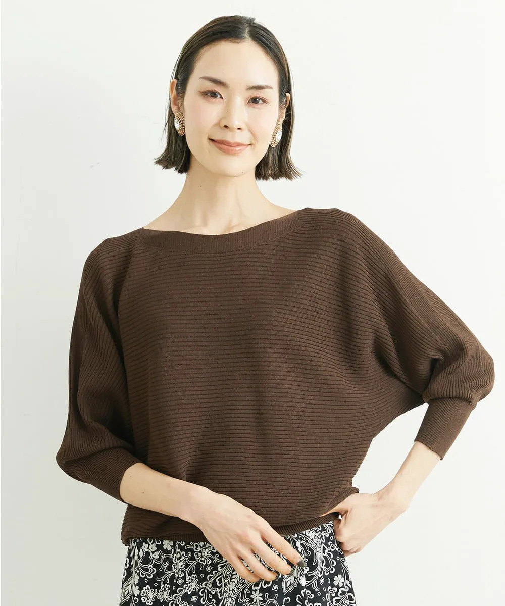 Пуловер с вырезом-лодочкой и рукавами «летучая мышь» с горизонтальной ребристой отделкой. Ребристая отделка манжет и низа создает привлекательный силуэт. Доступен в новых цветах весной 2023 года.