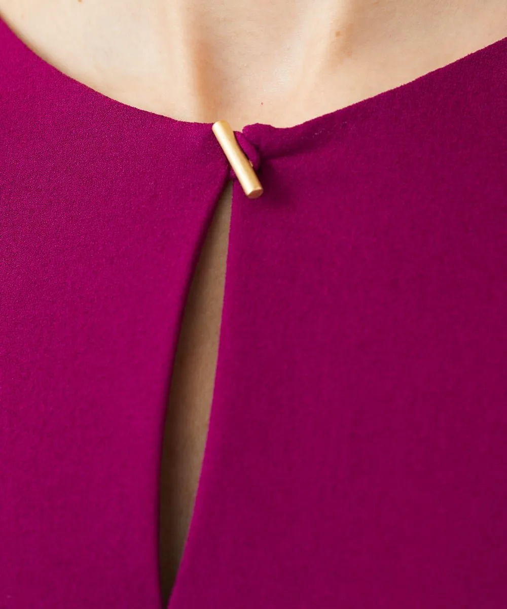Металлические пуговицы расположены на разрезе спереди, добавляя акцент, который еще больше усиливает шик.