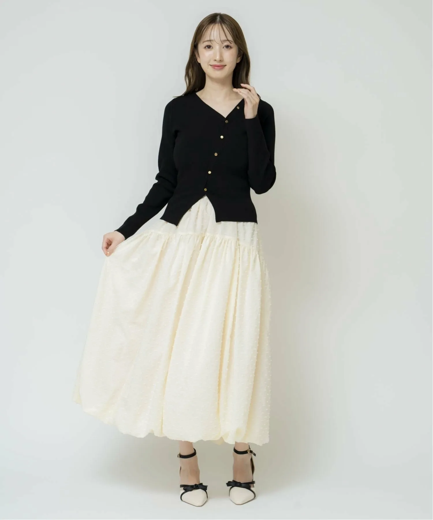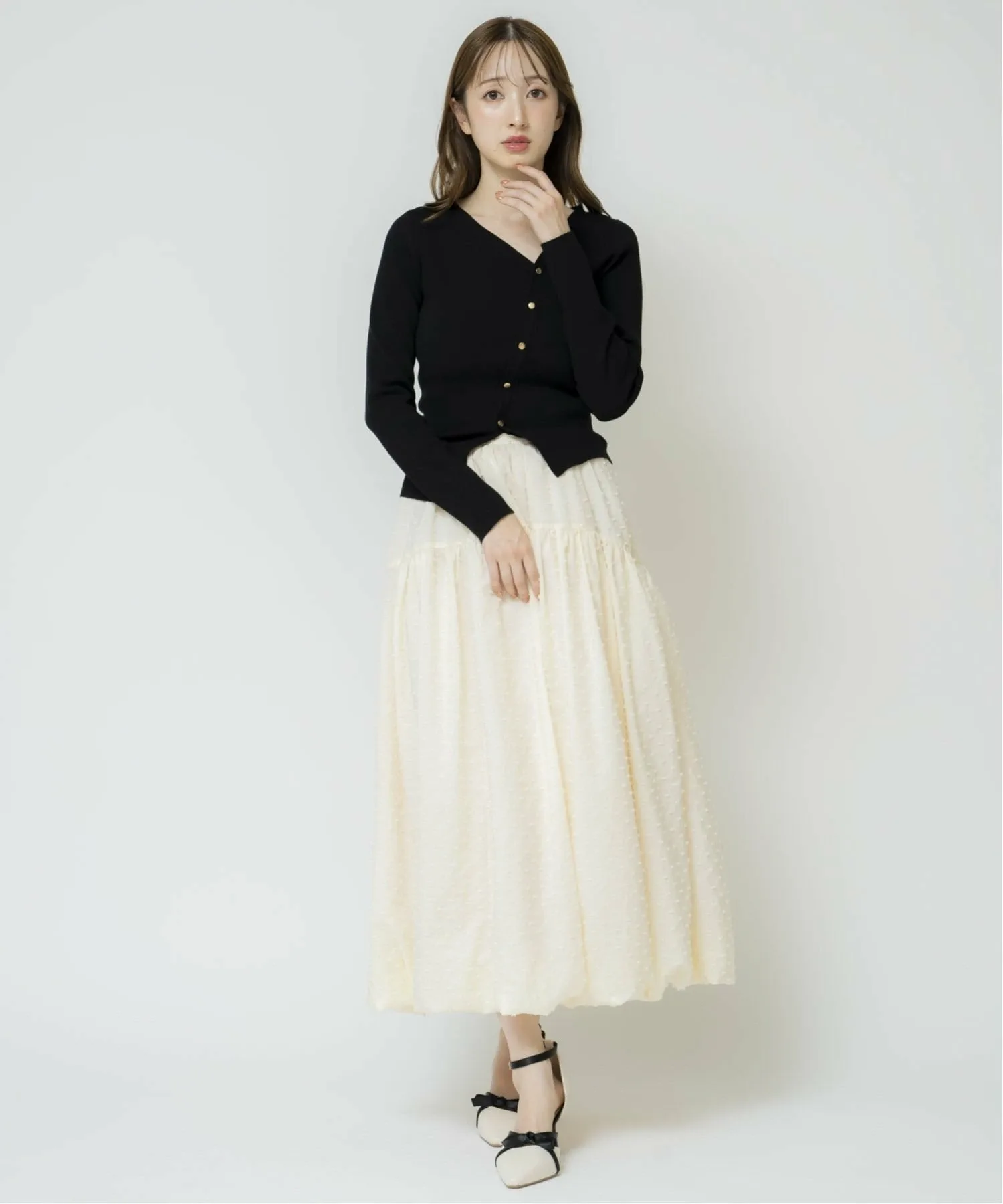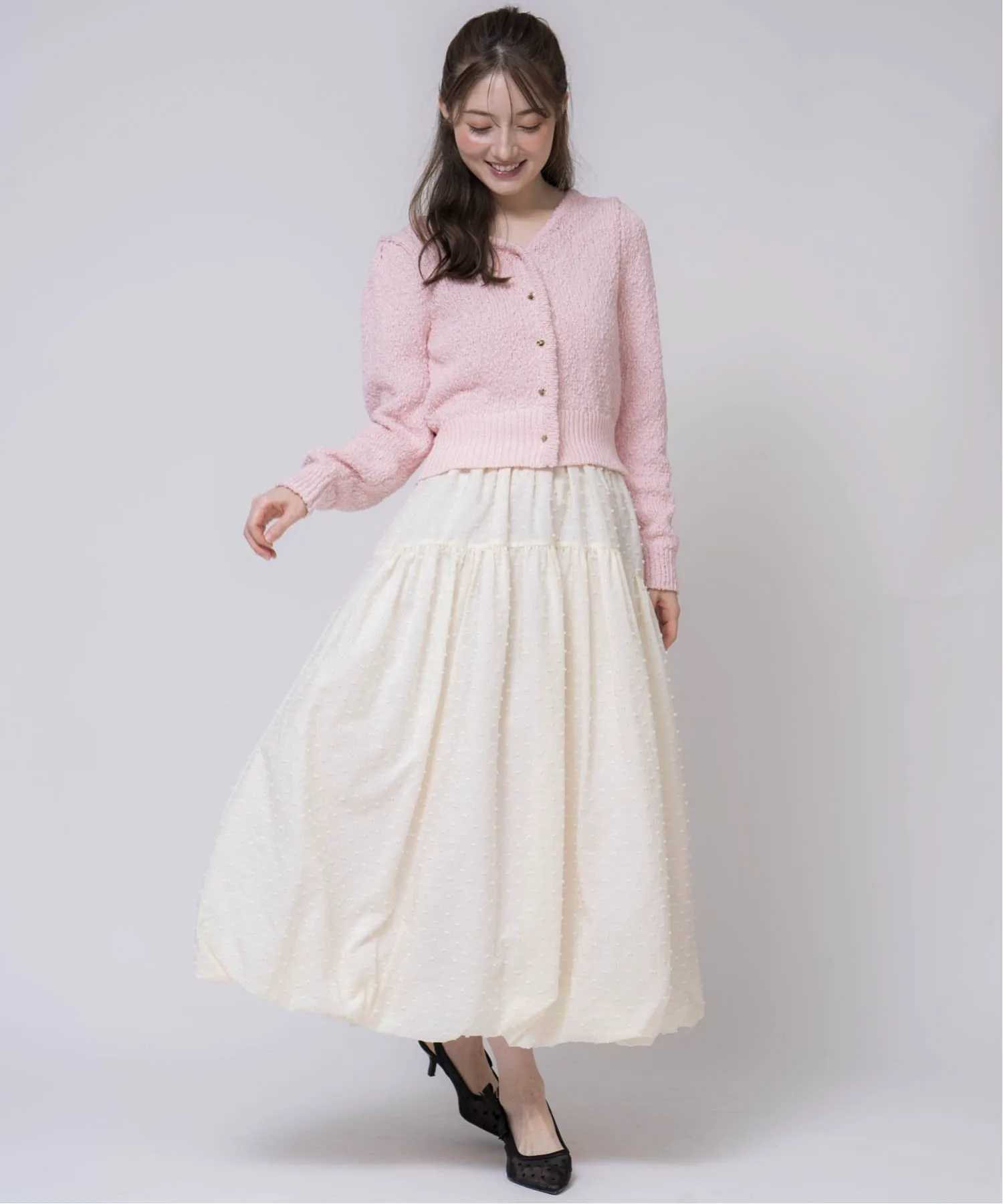 Эта юбка-баллон сшита из жаккардовой ткани с тонким ленточным узором. Силуэт «баллон» идеально подходит для этого сезона. Ткань хорошо драпируется, создавая изящный дизайн «баллона», что делает юбку чрезвычайно удобной и легкой в ношении. Доступна в трех цветах: черном, кремовом и розовом. Характеристики товара: Подкладка: Да Толщина ткани: Слегка тонкая Прозрачность: Нет Эластичность: Нет Карманы: Нет Застежка-молния: Да (сбоку) Обратите внимание: Возврат и обмен не принимаются, за исключением случаев бракованных товаров или ошибок при доставке. Показанный товар является образцом. Фактический товар может немного отличаться по цвету, характеристикам, отделке и размеру. Для получения информации о цвете и характеристиках товара, пожалуйста, обратитесь к изображению изделия на груди. Цвет на изображении может отличаться от фактического товара из-за условий освещения во время фотосъемки или настроек вашего компьютера или смартфона. Спасибо за понимание.