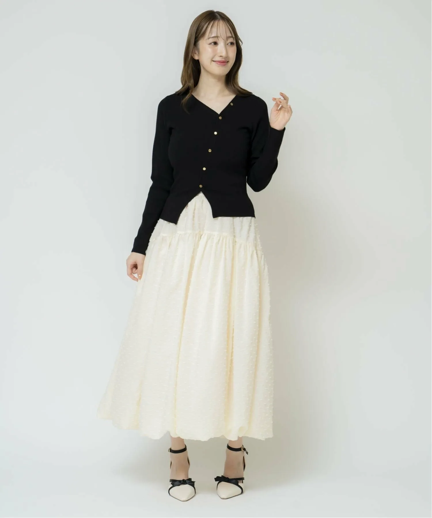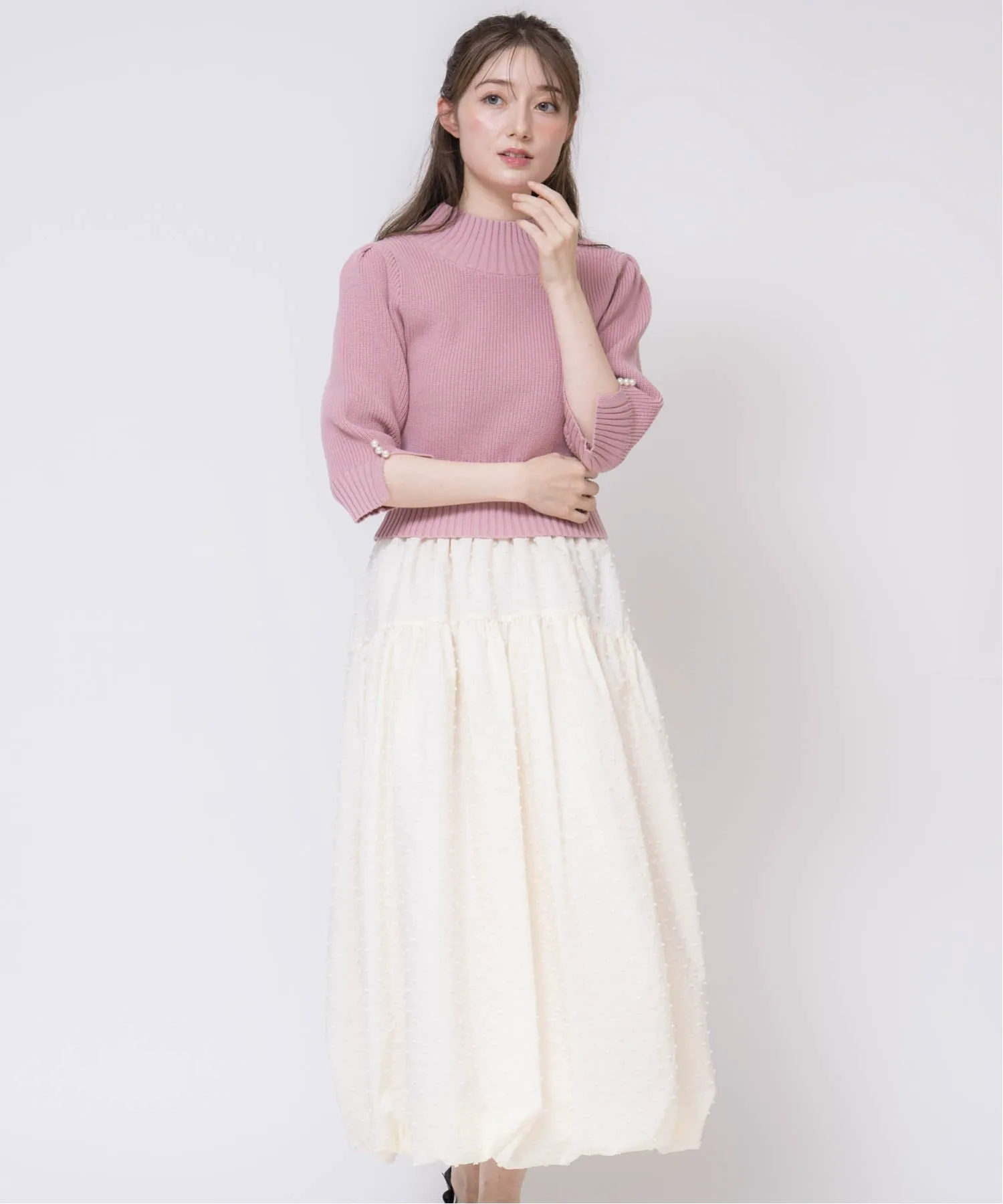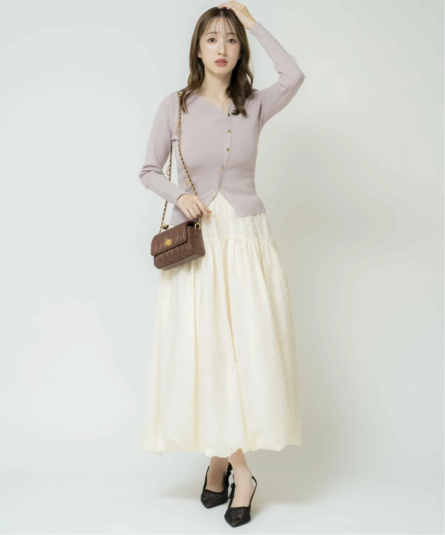 Эта юбка-баллон сшита из жаккардовой ткани с тонким ленточным узором. Силуэт «баллон» идеально подходит для этого сезона. Ткань хорошо драпируется, создавая изящный дизайн «баллона», что делает юбку чрезвычайно удобной и легкой в ношении. Доступна в трех цветах: черном, кремовом и розовом. Характеристики товара: Подкладка: Да Толщина ткани: Слегка тонкая Прозрачность: Нет Эластичность: Нет Карманы: Нет Застежка-молния: Да (сбоку) Обратите внимание: Возврат и обмен не принимаются, за исключением случаев бракованных товаров или ошибок при доставке. Показанный товар является образцом. Фактический товар может немного отличаться по цвету, характеристикам, отделке и размеру. Для получения информации о цвете и характеристиках товара, пожалуйста, обратитесь к изображению изделия на груди. Цвет на изображении может отличаться от фактического товара из-за условий освещения во время фотосъемки или настроек вашего компьютера или смартфона. Спасибо за понимание.