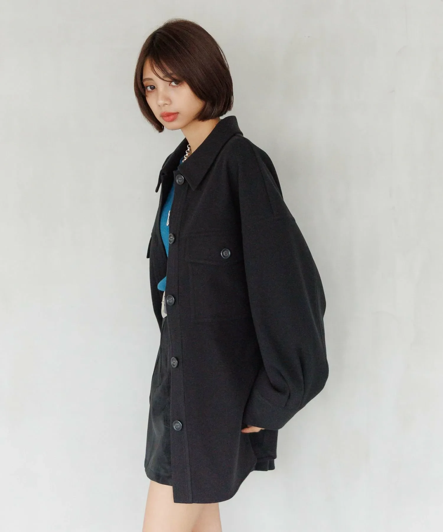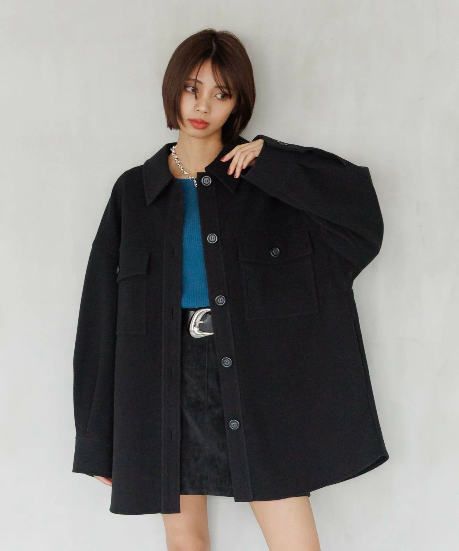 Свободный крой позволяет легко создавать различные образы, а длина доходит до бедер.