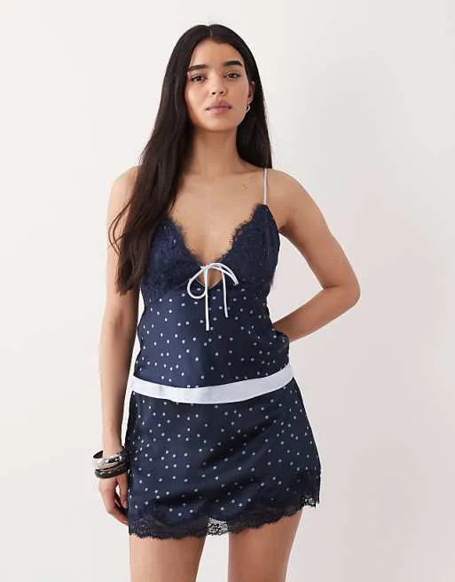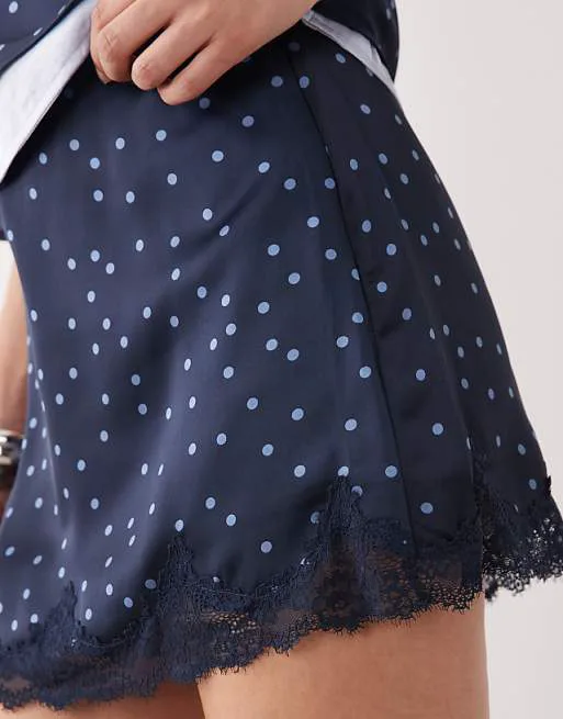 Юбка выполнена в темно-синем цвете с классическим принтом в горошек, который всегда актуален и придает образу женственность и шарм. Фасон шорт-юбки обеспечивает комфортную посадку и свободу движений, а также добавляет игривости в общий стиль. Средняя посадка подчеркивает талию, создавая привлекательный силуэт. Застежка на молнии сбоку обеспечивает удобство при надевании и снятии.