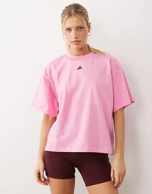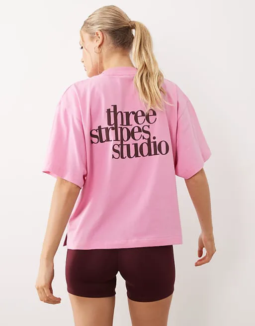 Розовая футболка adidas Performance Three Stripes Studios