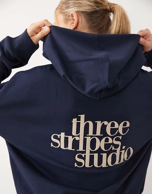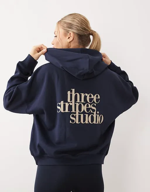 Темно-синяя худи adidas Performance Three Stripes Studio