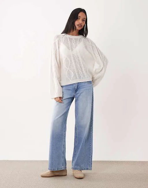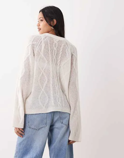 Особенностью модели является ажурный узор «косичка», который придает изделию изысканный вид и делает его подходящим как для повседневных образов, так и для более формальных мероприятий. Круглый вырез горловины классической формы подчеркивает шею и позволяет сочетать джемпер с различными аксессуарами, такими как шарфы или бусы.
