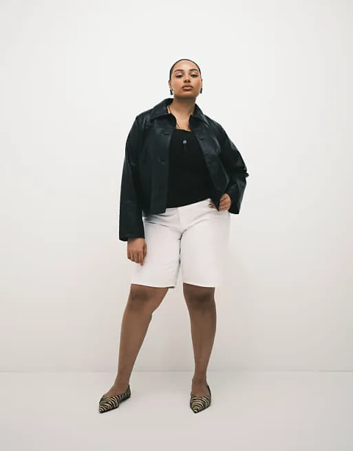 Представляем вашему вниманию стильные белые джинсовые шорты-бермуды от ASOS DESIGN. Эти шорты сочетают в себе комфорт и актуальный дизайн, идеально подходящие для создания модных образов в теплое время года. Изготовленные из 100% хлопка, они обеспечивают приятные тактильные ощущения и отличную воздухопроницаемость, что особенно важно в жаркую погоду.