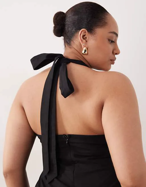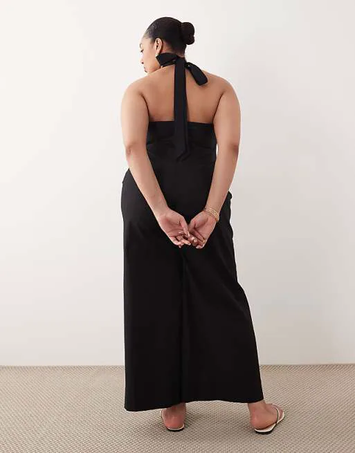 Представляем вашему вниманию стильный черный комбинезон от ASOS DESIGN, который станет прекрасным дополнением к вашему гардеробу. Этот комбинезон сочетает в себе элегантность и комфорт, идеально подходя для различных случаев.