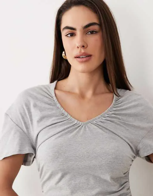 Платье выполнено из мягкого и эластичного трикотажа джерси, обеспечивающего приятные тактильные ощущения и свободу движений. V-образный вырез визуально удлиняет шею и добавляет образу женственности. Короткие рукава делают платье подходящим для теплой погоды или для создания многослойных образов в прохладное время года.