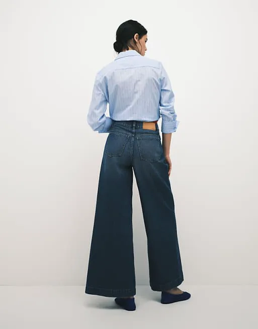 Представляем вашему вниманию элегантные темно-синие джинсы палаццо от ASOS DESIGN, которые станут основой вашего стильного гардероба. Эти джинсы сочетают в себе комфорт и современный дизайн, предлагая безупречный силуэт и универсальность в каждой детали.