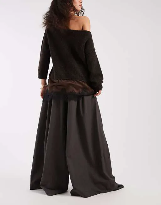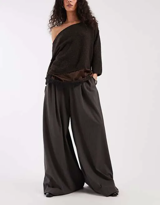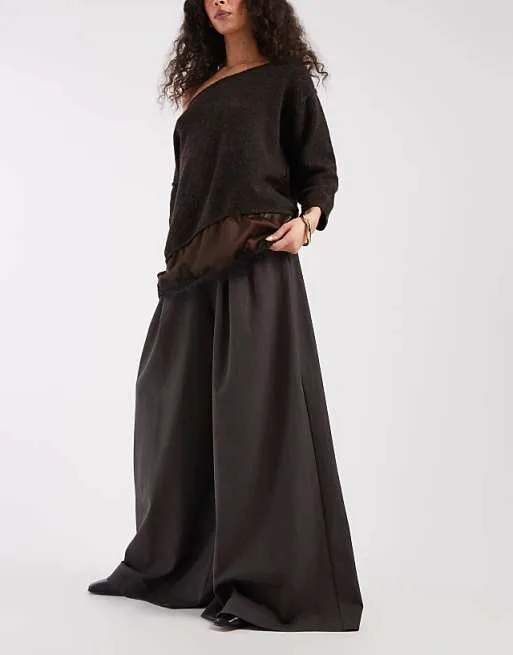 Представляем вашему вниманию брюки палаццо от ASOS DESIGN, воплощающие в себе комфорт и стиль. Эти брюки станут прекрасным дополнением к вашему гардеробу, подчеркивая вашу индивидуальность и безупречный вкус. Шоколадный оттенок ткани придает изделию благородный вид, делая его уместным как в повседневной жизни, так и для особых случаев.