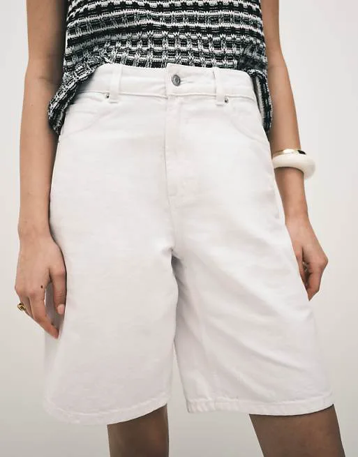 Представляем вашему вниманию стильные белые джинсовые шорты-бермуды от ASOS DESIGN. Эта модель сочетает в себе комфорт и актуальный дизайн, идеально подходящий для создания летних образов. Шорты выполнены из 100% хлопка, обеспечивая приятные тактильные ощущения и воздухопроницаемость в жаркую погоду.