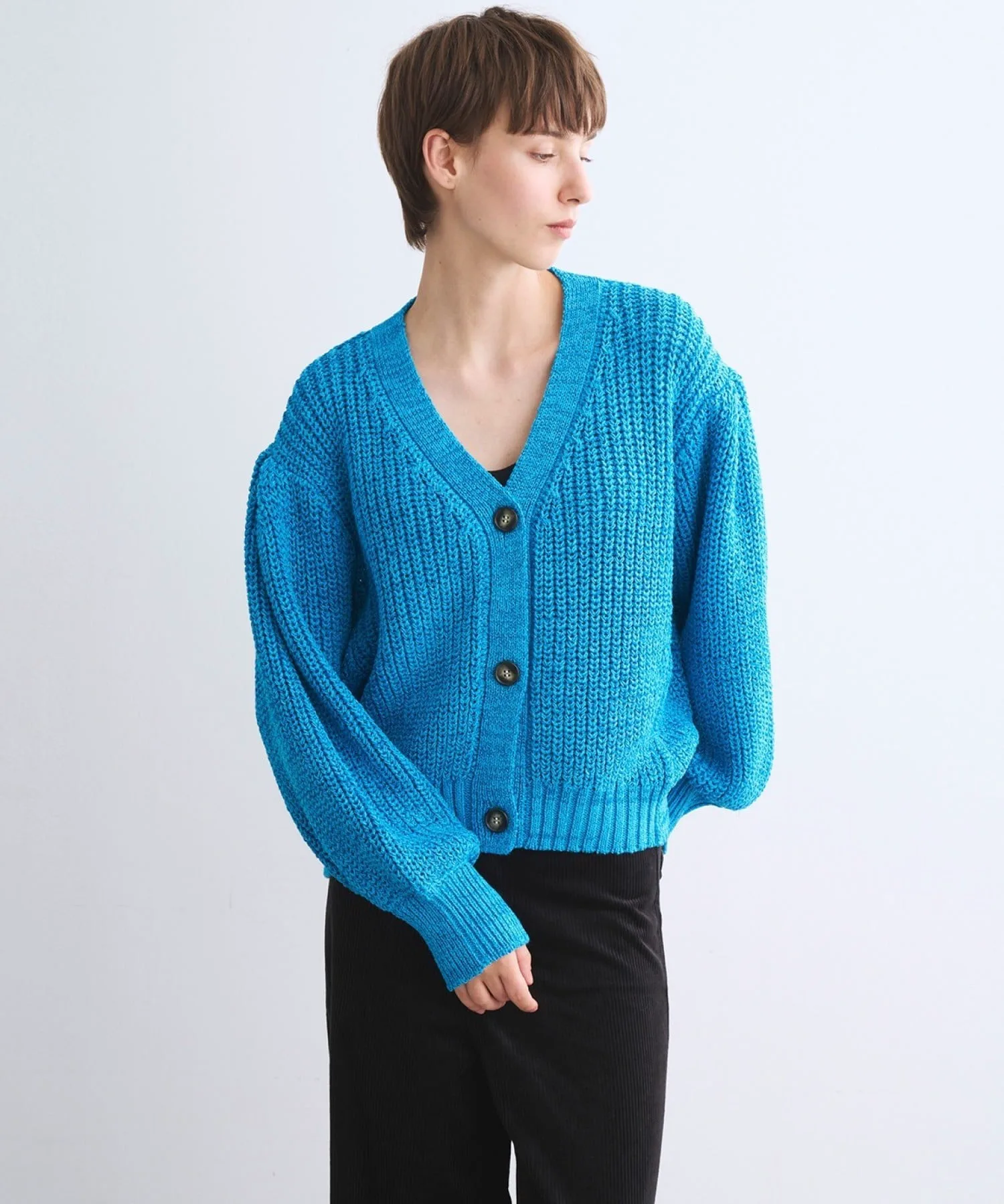 Кардиган из блестящей вязки, переливающийся на свету. Плотная вязка низкой толщины дополнена толстой блестящей пряжей. Просто сочетайте его с джинсами и топом, чтобы оживить свой образ. Складки на плечах добавляют объемный, современный штрих. Также доступен пуловер из того же материала.