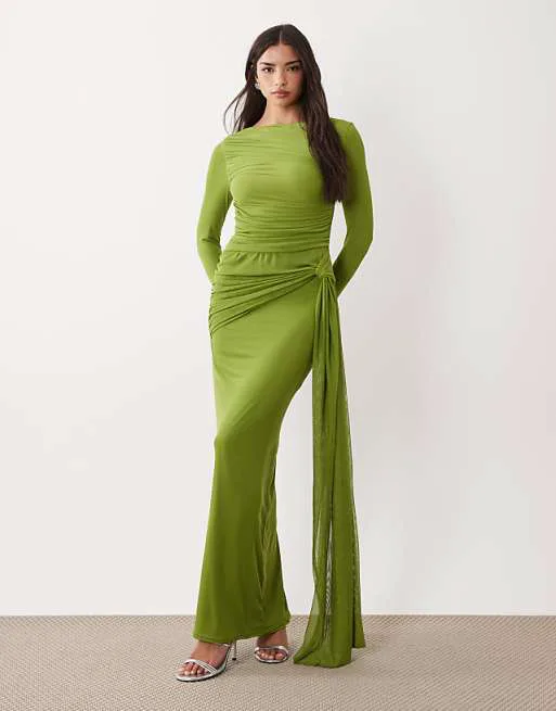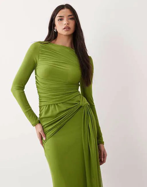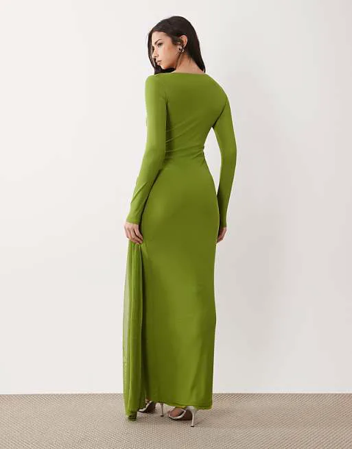 Представляем вашему вниманию изысканное зеленое платье макси от ASOS DESIGN, которое станет прекрасным дополнением к вашему гардеробу. Это платье сочетает в себе элегантность и современный стиль, идеально подходящее для различных мероприятий.