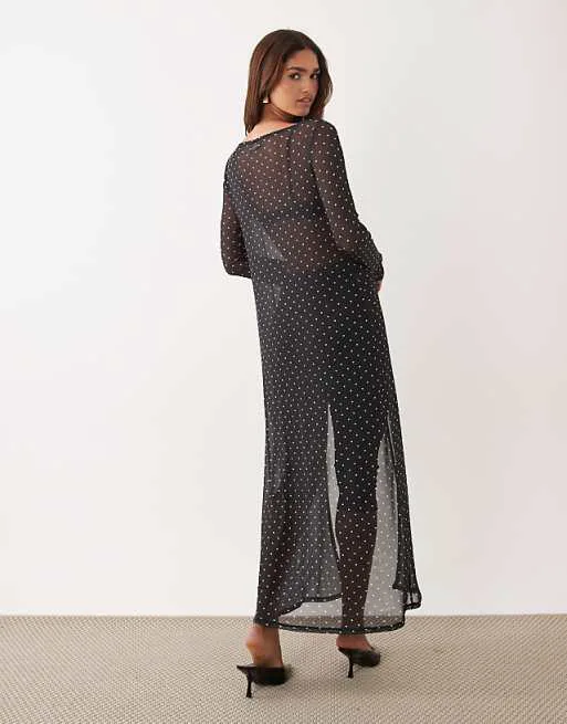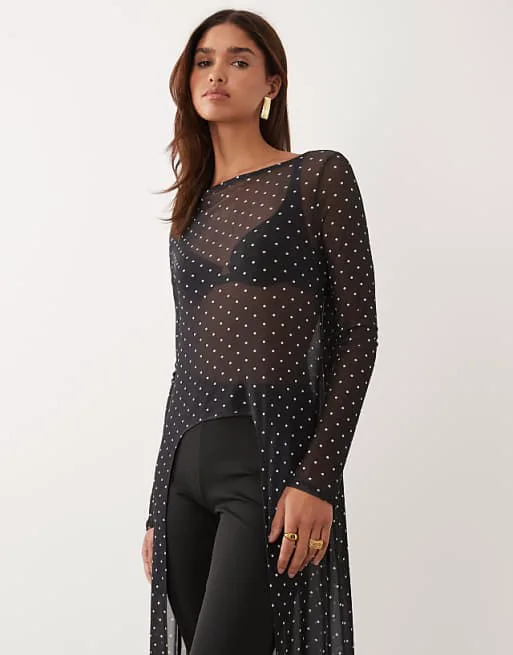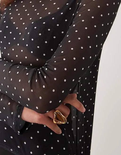 Длинный сетчатый топ-кейп в горошек с принтом ASOS DESIGN