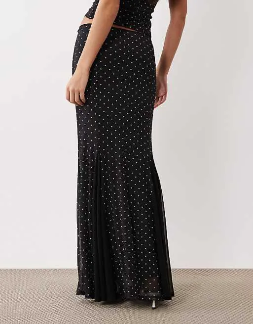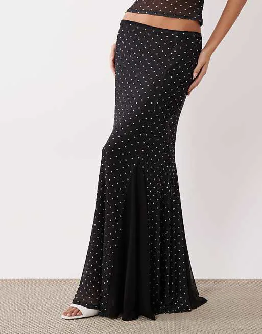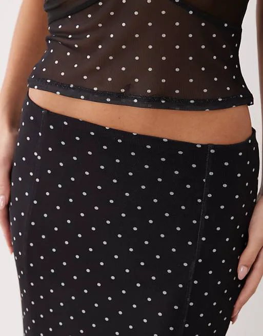 Юбка выполнена из тонкой, эластичной и мягкой сетки, которая создает легкий и воздушный силуэт. Множество крошечных дырочек придают ткани особую текстуру и обеспечивают комфорт при носке. Принт в горошек добавляет игривости и женственности, делая юбку универсальной для различных случаев.