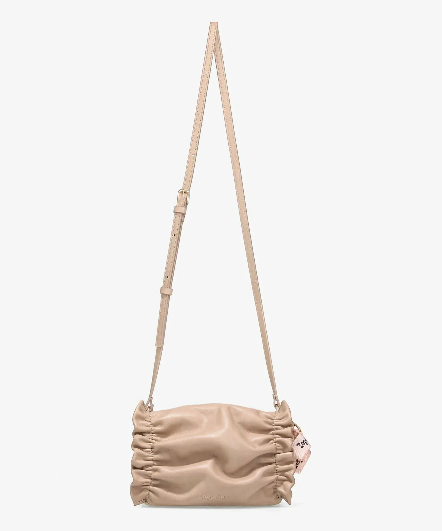 Эта сумка через плечо создана под вдохновением от фирменной «подушки» Дома. Ее мягкие линии, нежная кожа и плиссированные детали напоминают о грации и женственности мира балета. Подвеска выполнена из культовой репсовой ленты и является съемной.