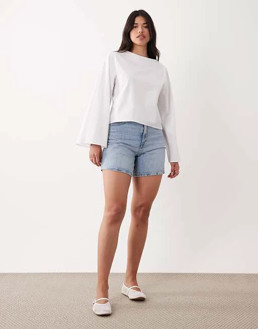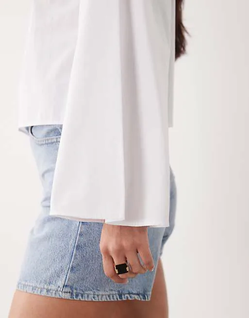Представляем вашему вниманию элегантный белый топ с рукавами-флейр от ASOS DESIGN. Этот топ станет прекрасным дополнением к вашему гардеробу, сочетая в себе простоту и изысканность. Дизайн топа продуман до мелочей, чтобы подчеркнуть вашу индивидуальность и создать неповторимый образ.