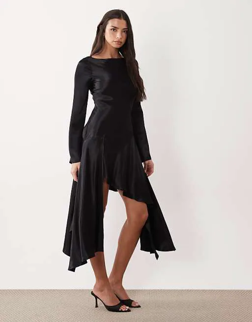 Особенностью модели является асимметричный каскадный подол, который придает платью динамичность и оригинальность. Этот элемент дизайна создает эффект легкости и воздушности, делая образ более интересным и запоминающимся. Платье имеет классический крой, который идеально садится по фигуре, подчеркивая ее достоинства.