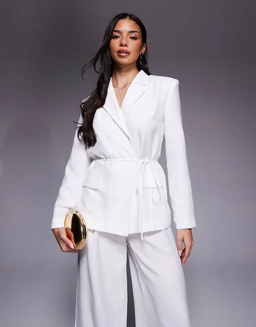 Одной из ключевых особенностей этого пиджака является его пояс на талии, который подчеркивает силуэт и придает образу женственность. Лацканы с вырезом добавляют изящества, а усиленные плечи создают структурированный и утонченный вид. Карманы с клапанами не только функциональны, но и служат декоративным элементом, добавляя пиджаку завершенность.