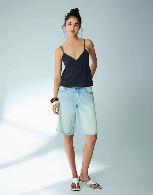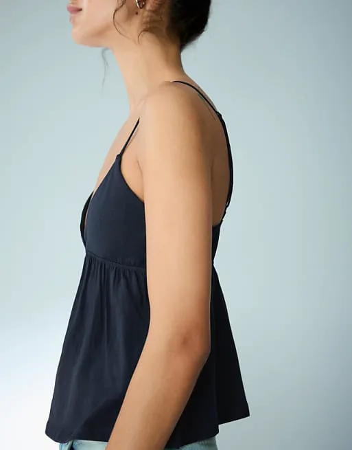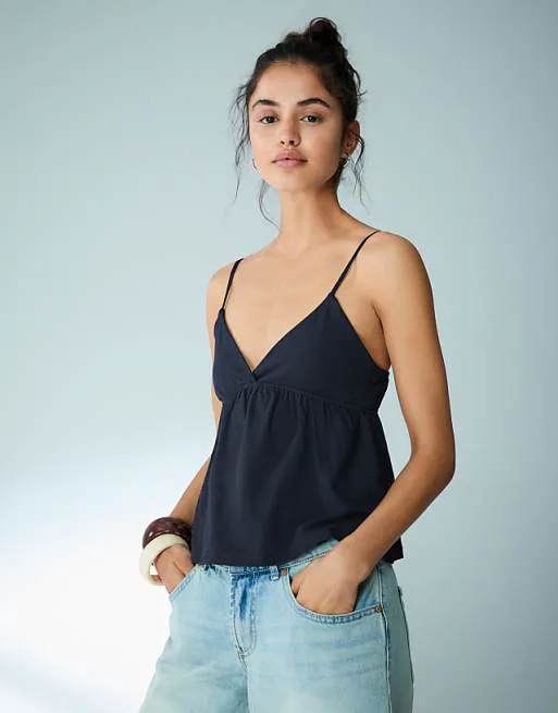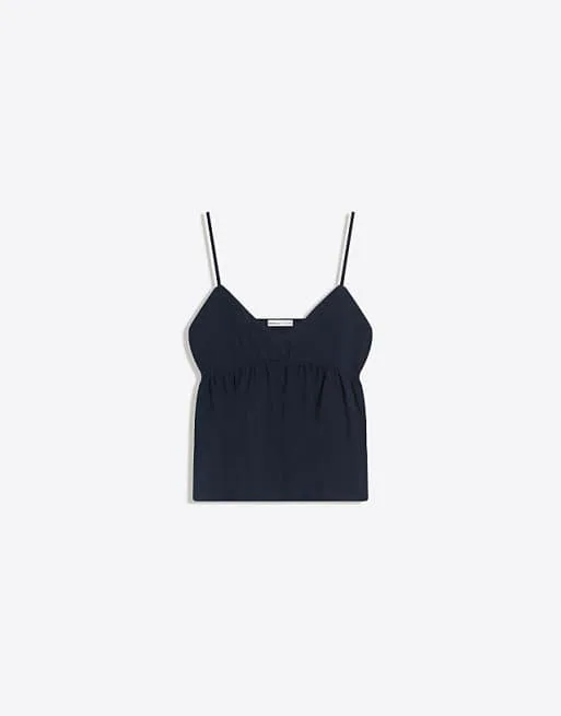 Темно-синий топ с рюшами Bershka