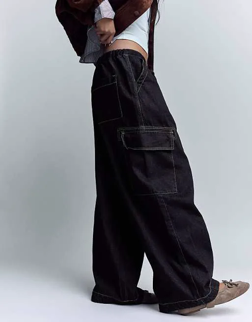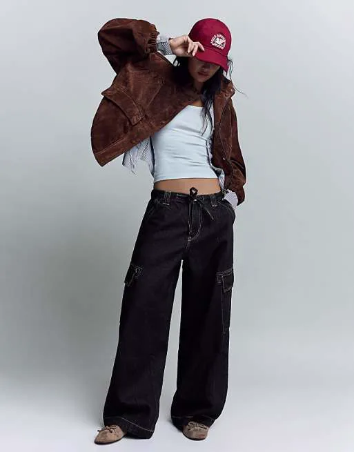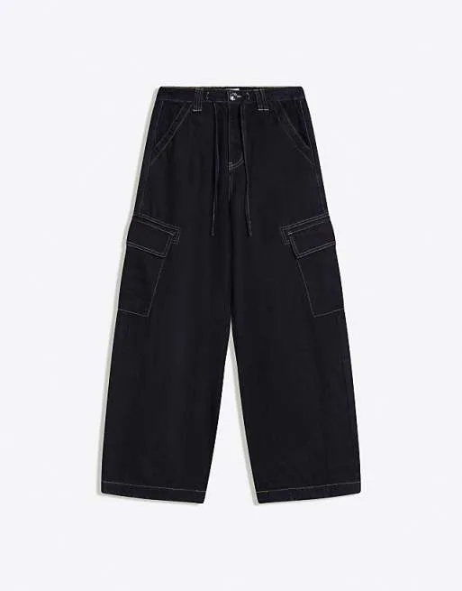 Синие джинсы карго Bershka Parachute
