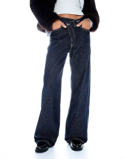 Представляем вашему вниманию стильные темно-синие широкие джинсы от Bershka, которые станут отличным дополнением к вашему гардеробу. Эти джинсы сочетают в себе комфорт и современный дизайн, идеально подходящие для создания модных образов на каждый день.