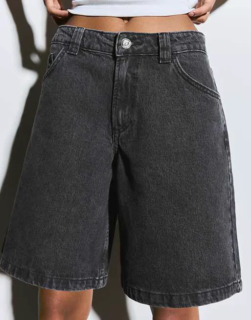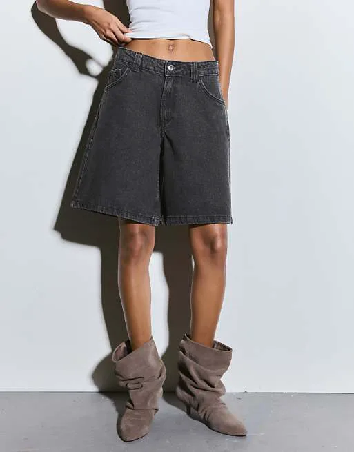 Представляем вашему вниманию стильные черные джинсовые шорты от Bershka, которые станут незаменимой вещью в вашем гардеробе. Эти шорты сочетают в себе комфорт и современный дизайн, идеально подходя для создания расслабленных, но в то же время модных образов.