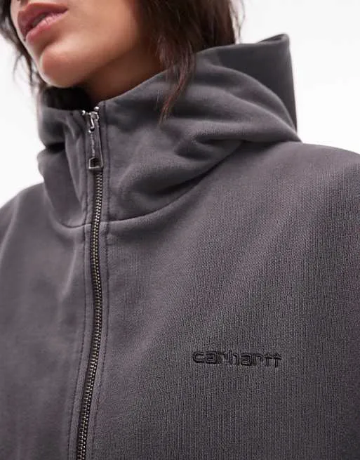 Дизайн худи продуман до мелочей. Несъемный капюшон защитит от ветра и непогоды, а застежка-молния позволит регулировать уровень тепла и комфорта. Длинные рукава и карман-кенгуру добавляют практичности и функциональности. Фирменный дизайн Carhartt WIP подчеркивает вашу приверженность к качественной и стильной одежде.
