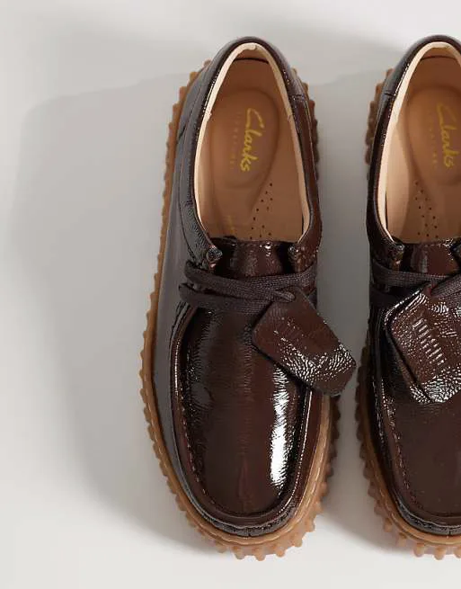 Туфли выполнены из высококачественной глянцевой лакированной кожи, которая придает им изысканный внешний вид и обеспечивает долговечность. Фирменный логотип Clarks, расположенный на изделии, служит подтверждением подлинности и высокого качества.