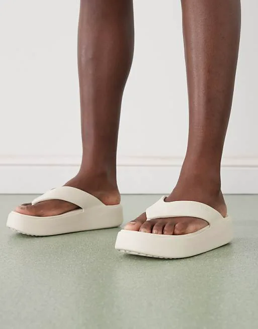 Шлепанцы оснащены ремешком между пальцами для надежной фиксации стопы. Фирменный логотип Crocs добавляет узнаваемость и подчеркивает высокое качество изделия. Платформа придает шлепанцам современный вид и обеспечивает дополнительный комфорт.