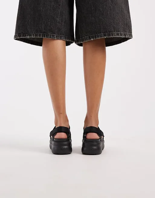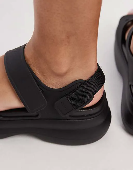 Особенностью модели является платформа, которая придает образу актуальность и добавляет несколько сантиметров роста, сохраняя при этом легкость и удобство, присущие обуви Crocs. Черный цвет делает сандалии универсальными, позволяя легко сочетать их с любой одеждой – от повседневных джинсов и шорт до летних платьев и юбок.