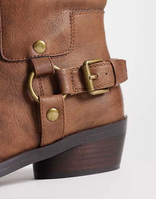 Представляем вашему вниманию стильные ботинки-вестерны от Glamorous Wide Fit. Эта модель сочетает в себе дерзкий дух Дикого Запада и современный комфорт. Ботинки выполнены в классическом коричневом цвете, который легко сочетается с различными элементами гардероба. Дизайн ботинок вдохновлен культовым стилем вестерн, что делает их отличным выбором для тех, кто хочет добавить в свой образ нотку бунтарства и индивидуальности.