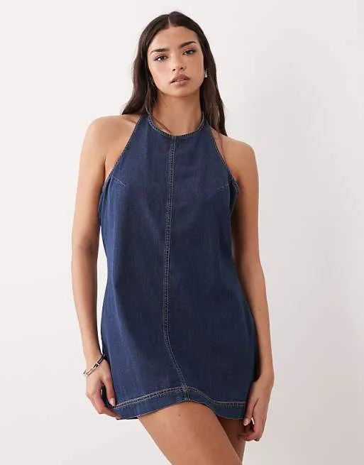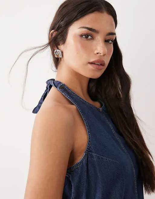 Представляем вам стильное темно-синее джинсовое мини-платье, которое станет ярким акцентом в вашем гардеробе. Эта модель сочетает в себе элегантность и комфорт, идеально подходя для создания эффектных образов.
