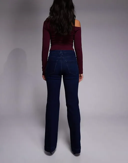 Дизайн и крой: Джинсы имеют прямой крой с небольшим расклешением от колена, что визуально удлиняет ноги и придает образу женственность. Высокая посадка обеспечивает комфортную посадку по талии и подчеркивает силуэт. Классический дизайн включает в себя пять карманов, добавляющих функциональность и узнаваемость. Шлевки для ремня позволяют дополнить образ любимым аксессуаром.