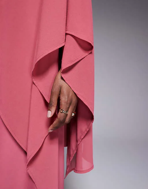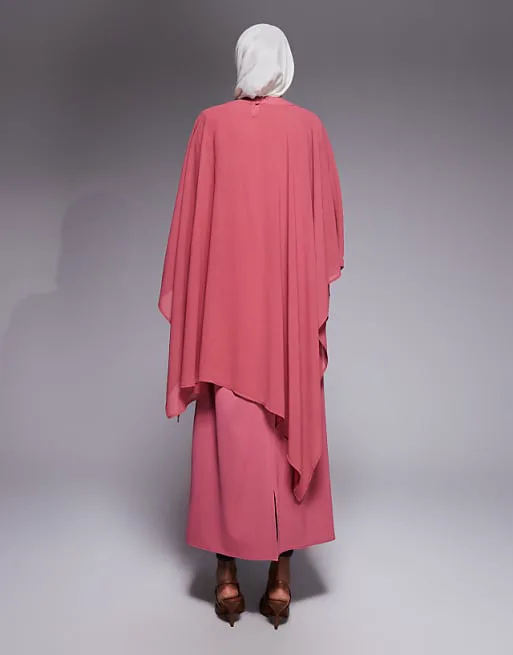 Одной из главных особенностей платья является его уникальный крой. Высокий воротник придает образу благородство, а накладка в виде драпированной пелерины добавляет изысканности и шарма. Длинные рукава обеспечивают комфорт и тепло, делая платье подходящим для прохладной погоды. Макси длина платья создает ощущение легкости и воздушности, а классический крой подчеркивает достоинства фигуры.